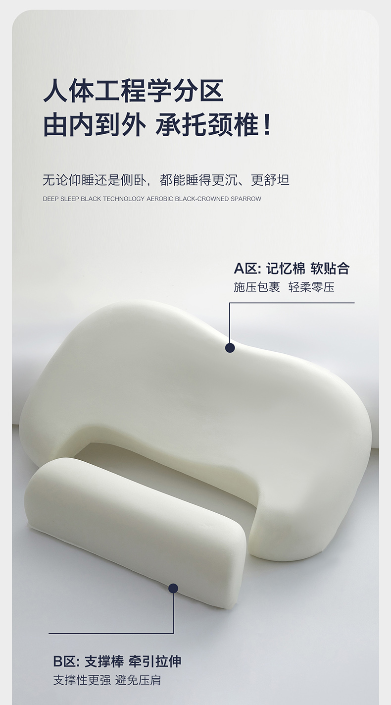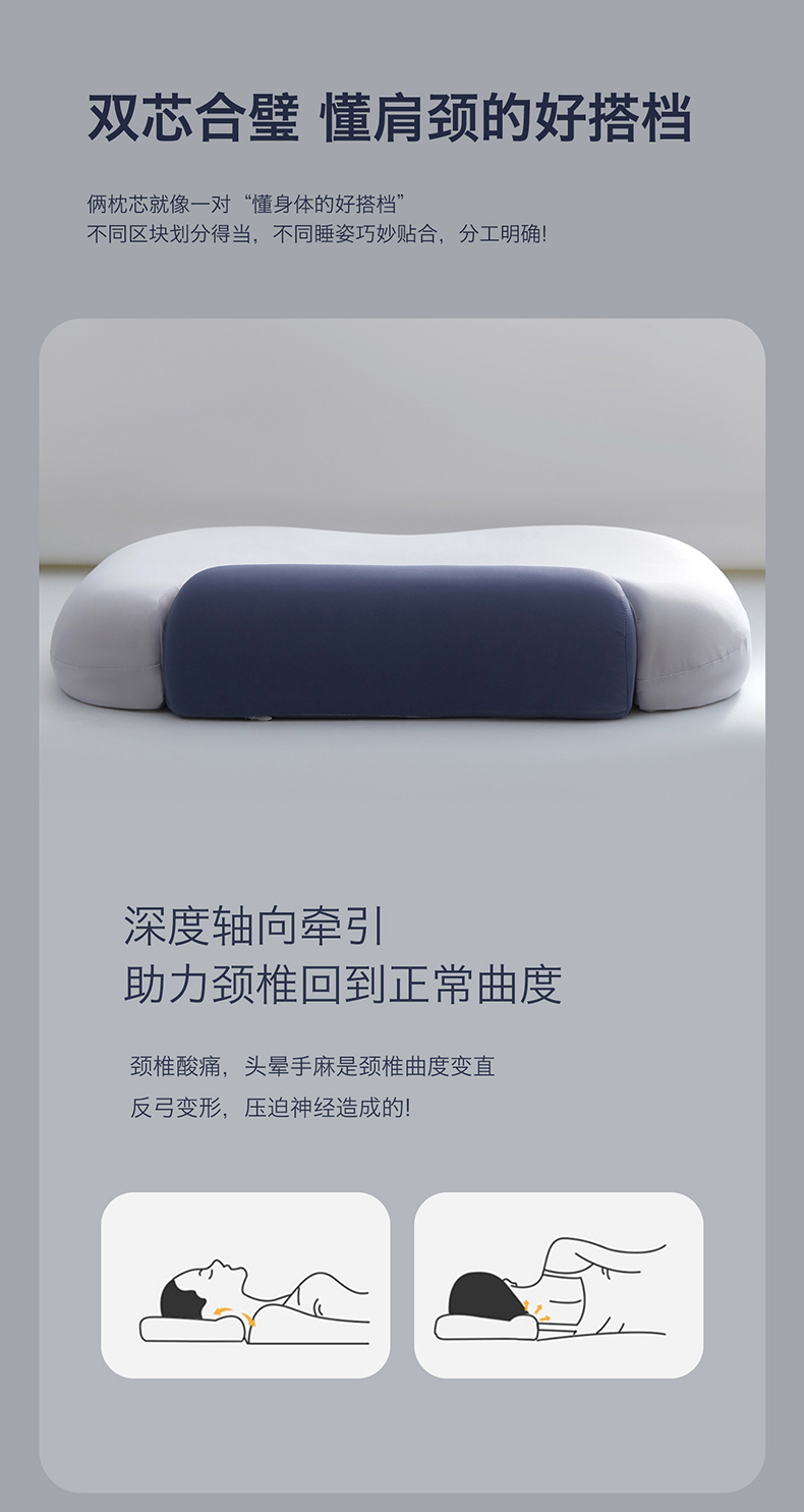 商品名称:(总)2026新款 双向牵引记忆枕芯慢回弹枕头 深睡零压牵引护颈枕芯记忆棉成人学生枕头