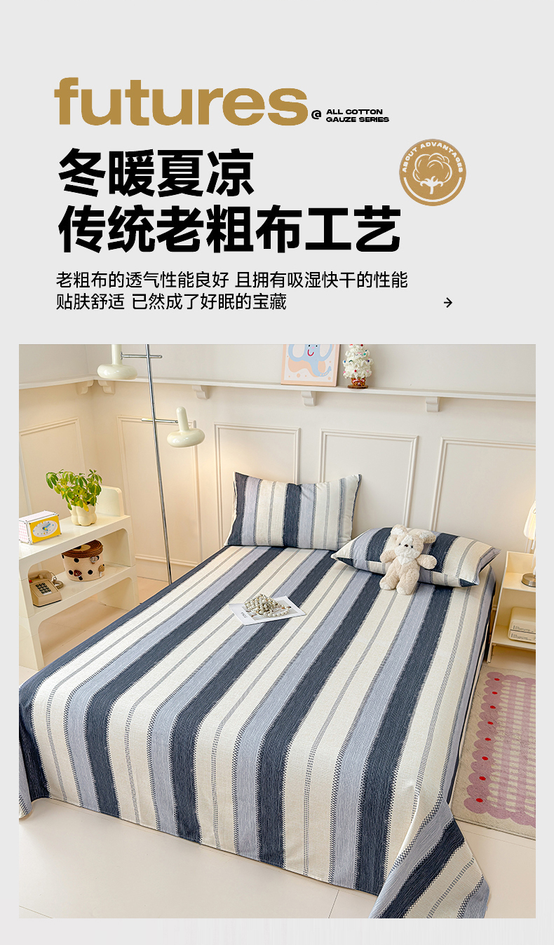 当前位置: 91家纺网 > 商品网购 > 床上用品 > 凉席 > 其他凉席 > 缦彩 2026新款全棉老粗布床单100%纯棉凉席席子三件套 简纹蓝调