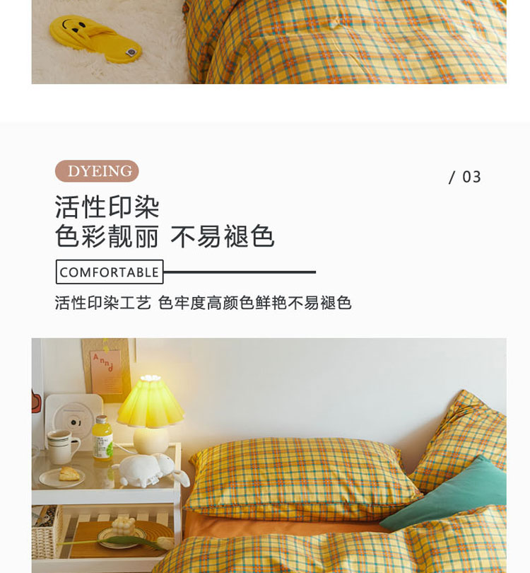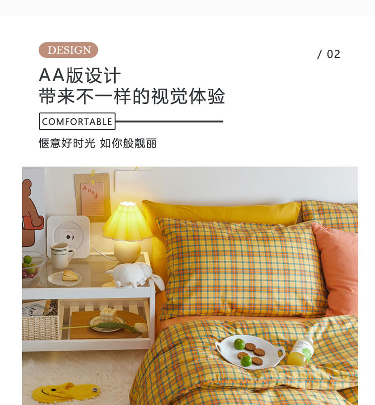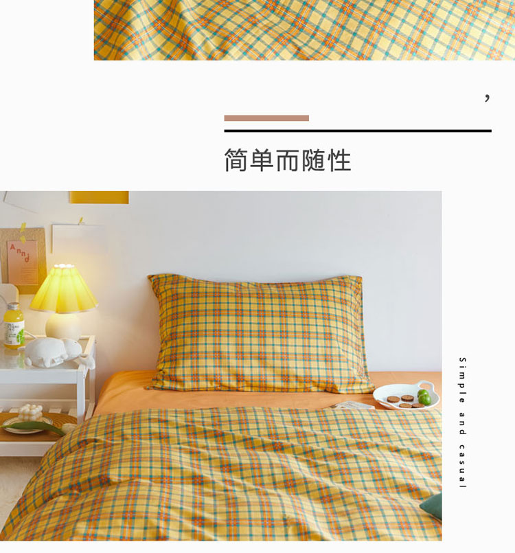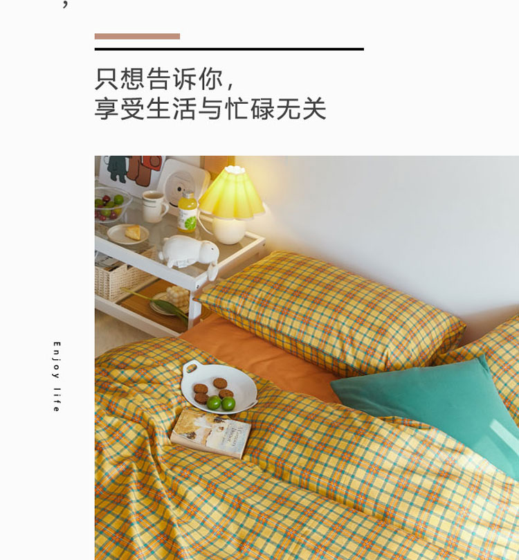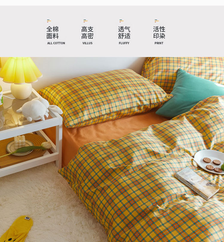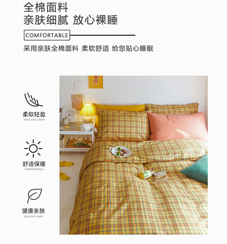 商品名称:梦家居 2020新款全棉复古格系列四件套 温柔小黄格