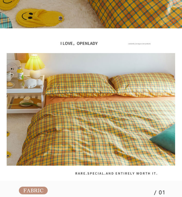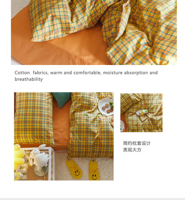 梦家居 2020新款全棉复古格系列四件套 温柔小黄格