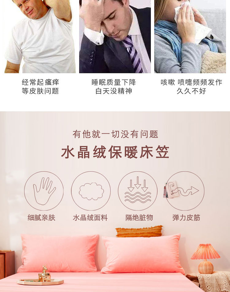 商品名称:梦家居 2020秋冬单品水晶绒床笠 浅粉色