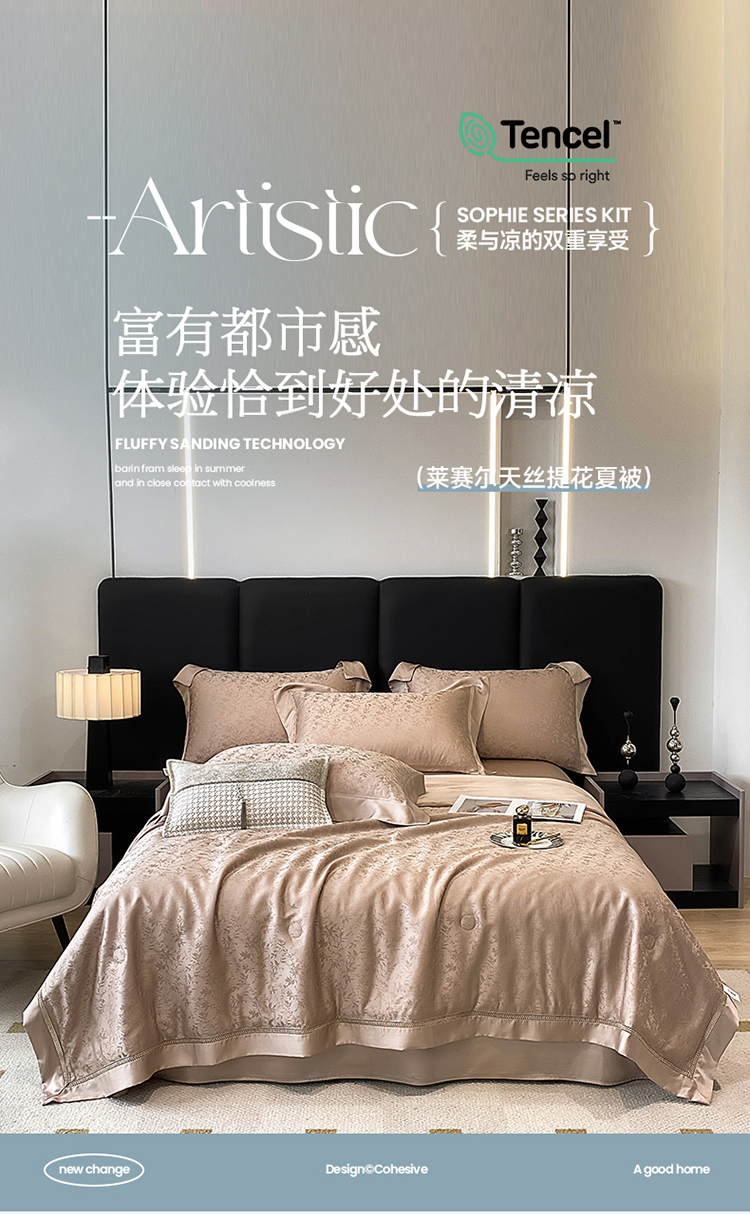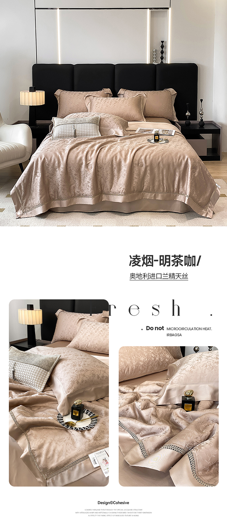 娇逸家居 2025新款60支天丝提花夏被(专版花型) 凌烟-明茶咖