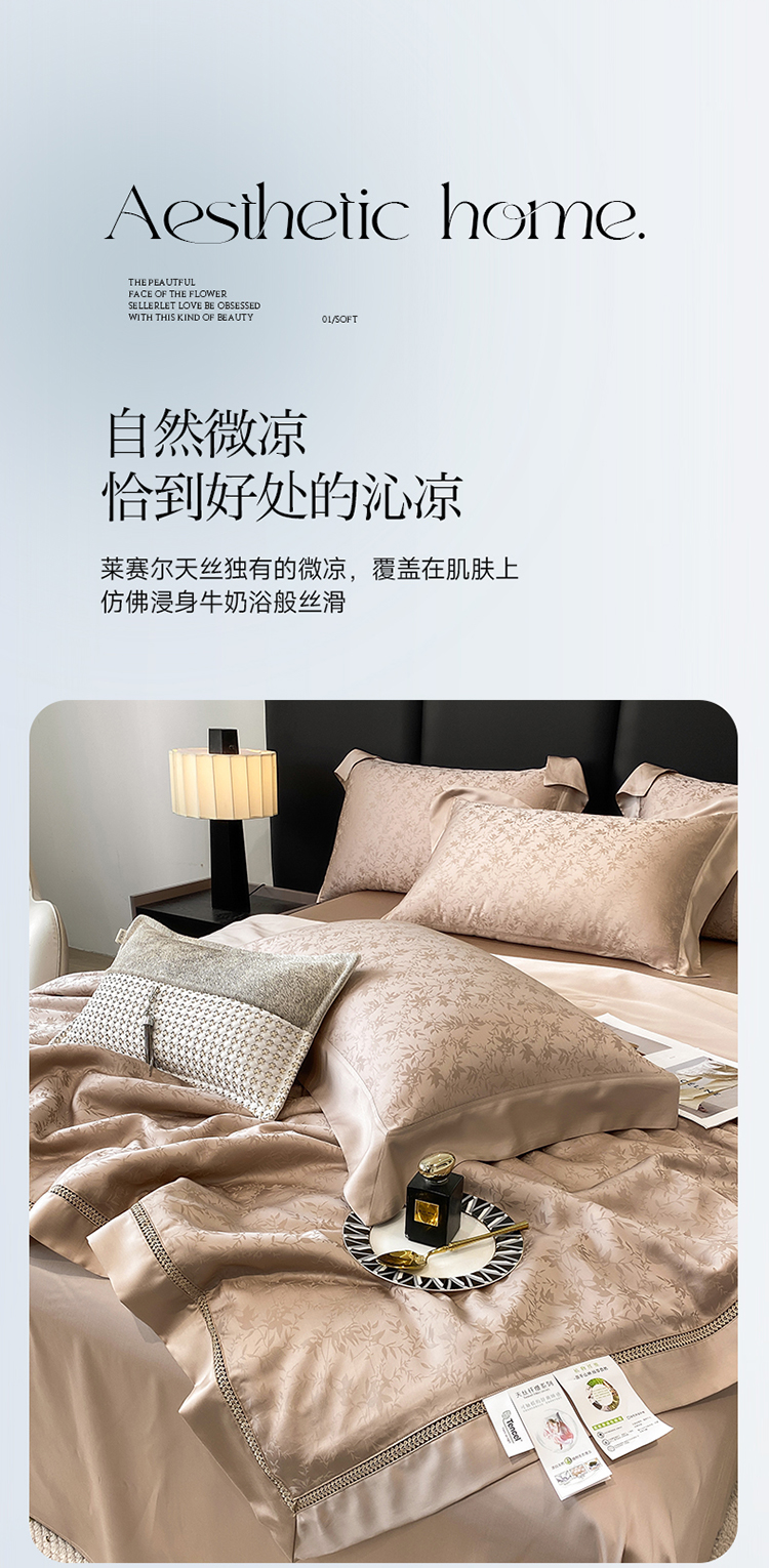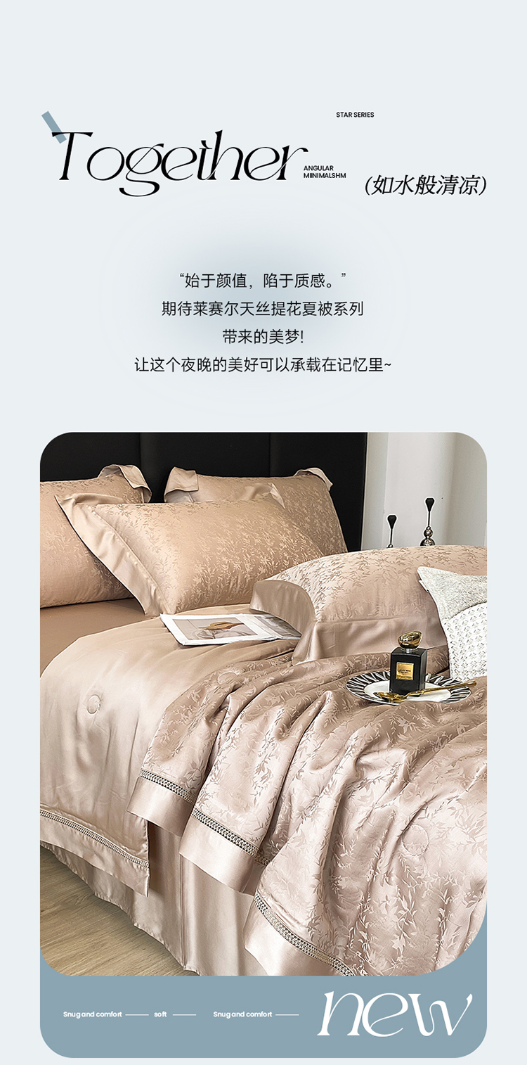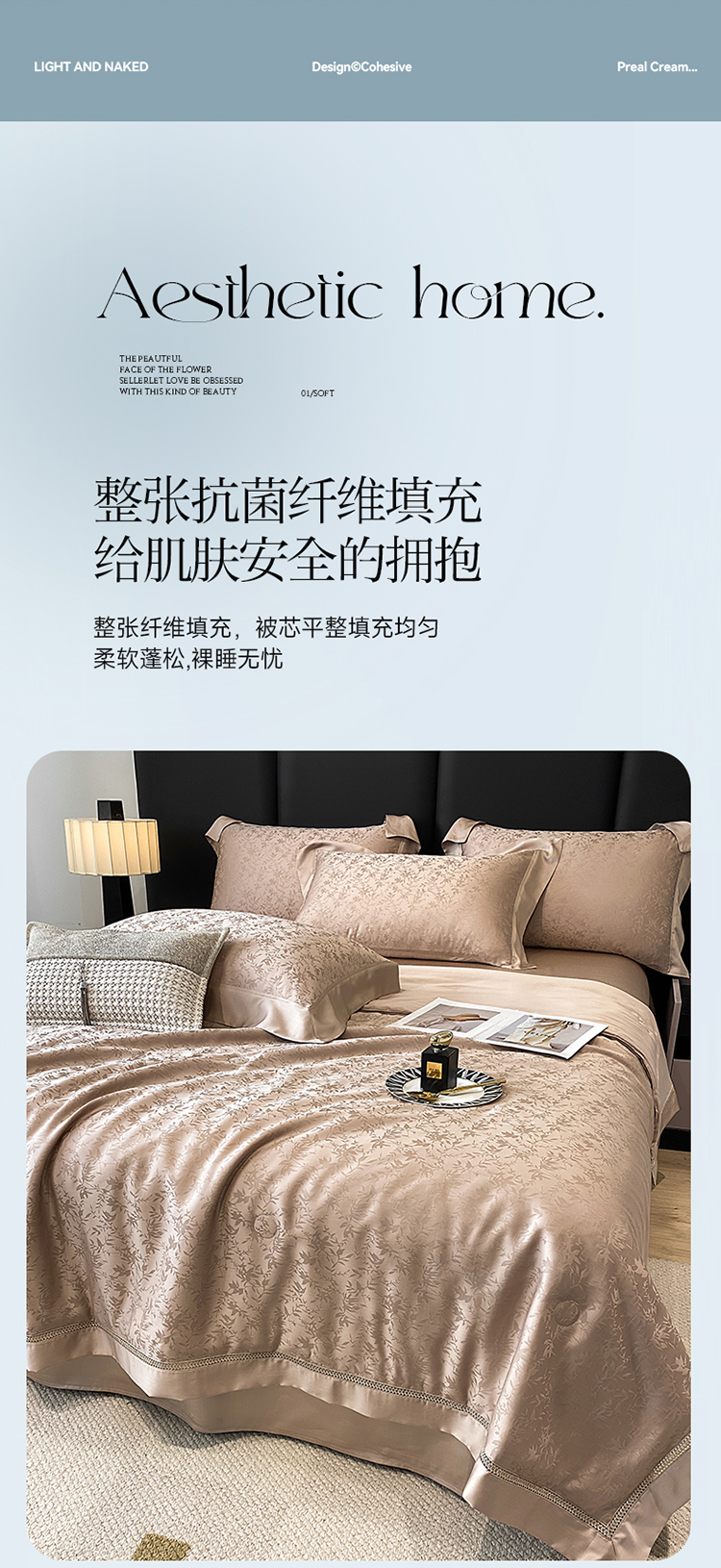 (总)娇逸家居 2025新款60支天丝棉提花贵妇银丝春秋被被子被芯可配同系列枕套床单,繁星咖,露华粉,洛神白,美乐粉,依琳白,悦动白,珠箔灰