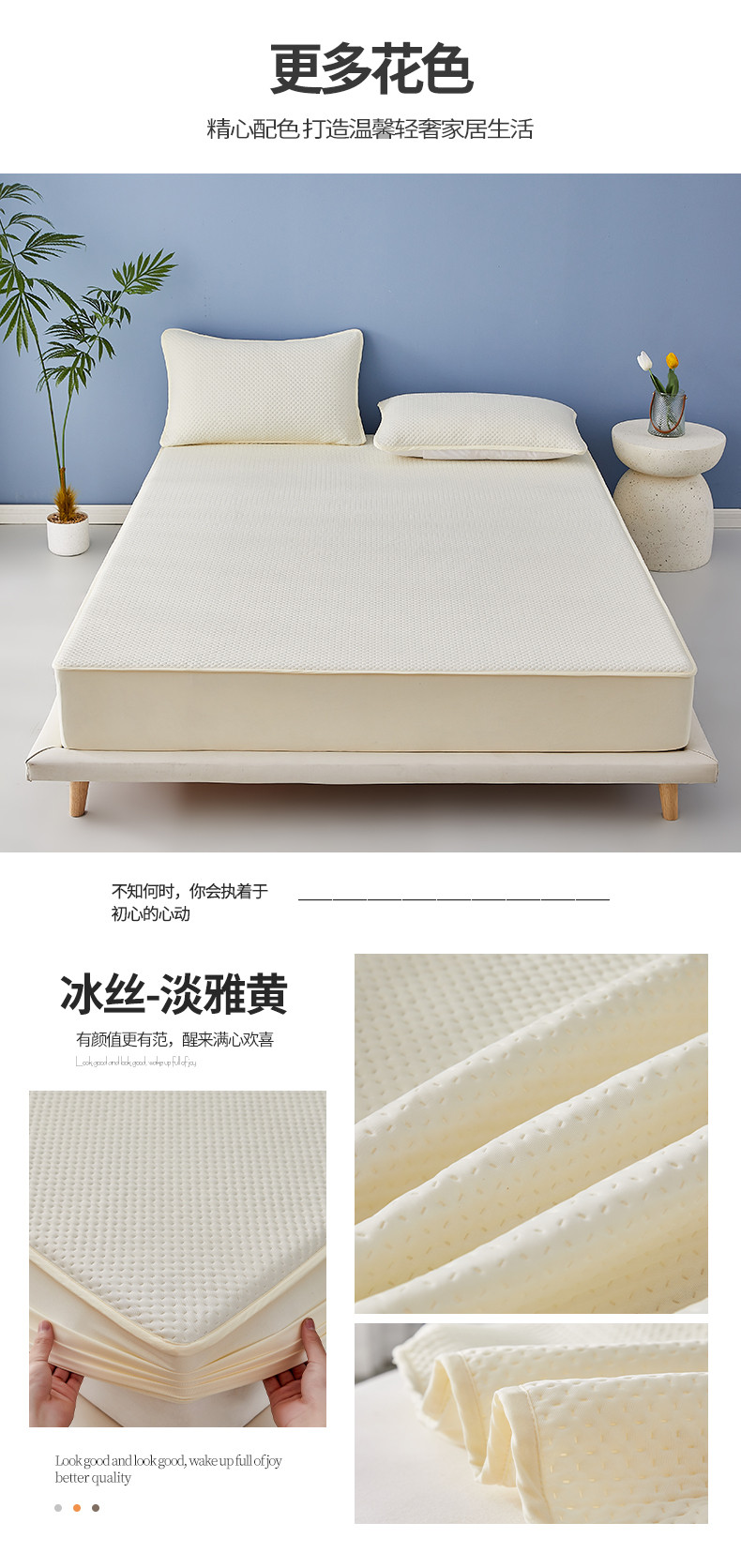 商品名称:格子铺 2023新款A类凉感冰丝夹棉床笠凉席 冰丝-淡雅黄