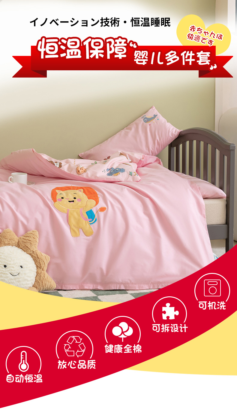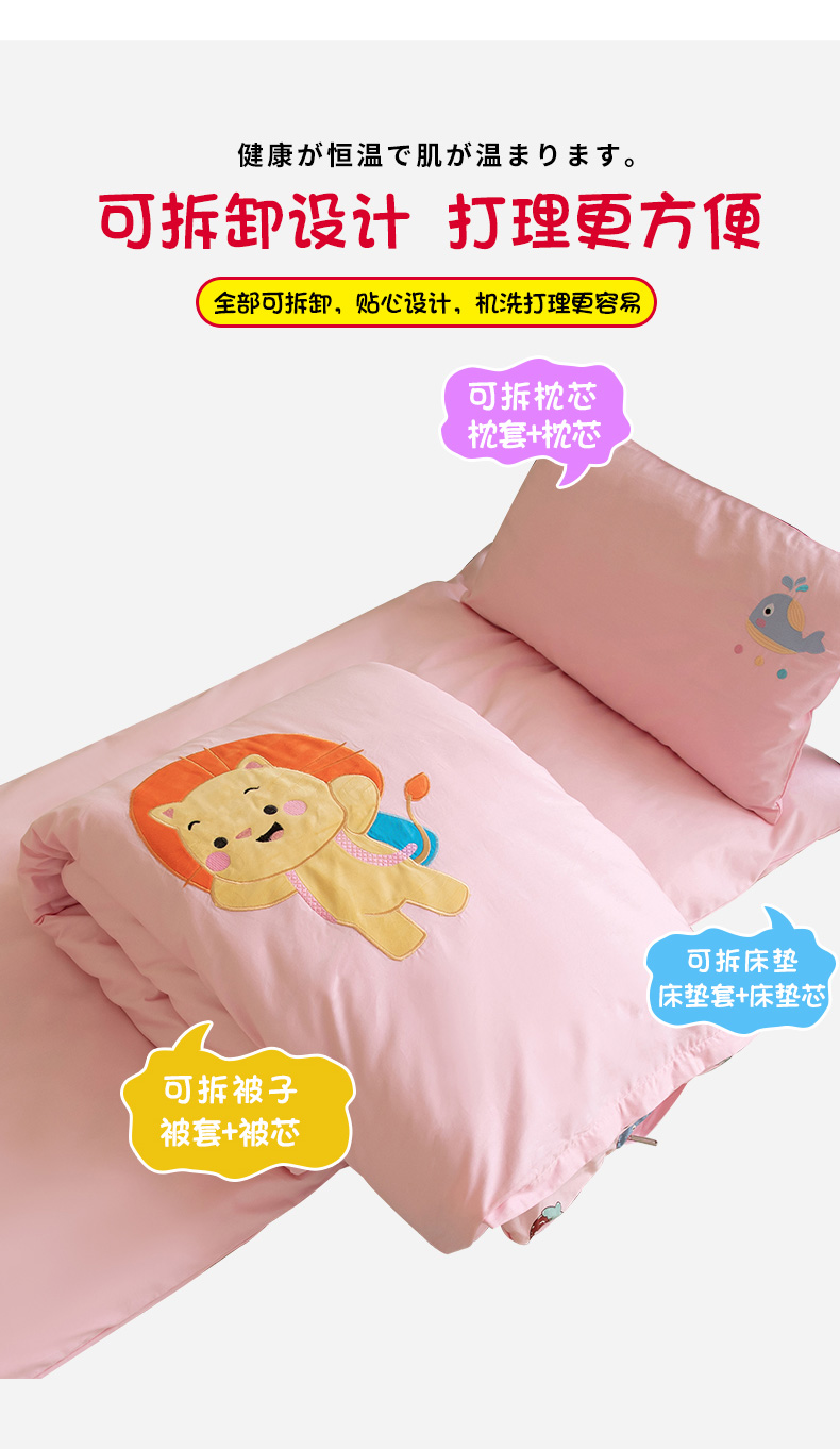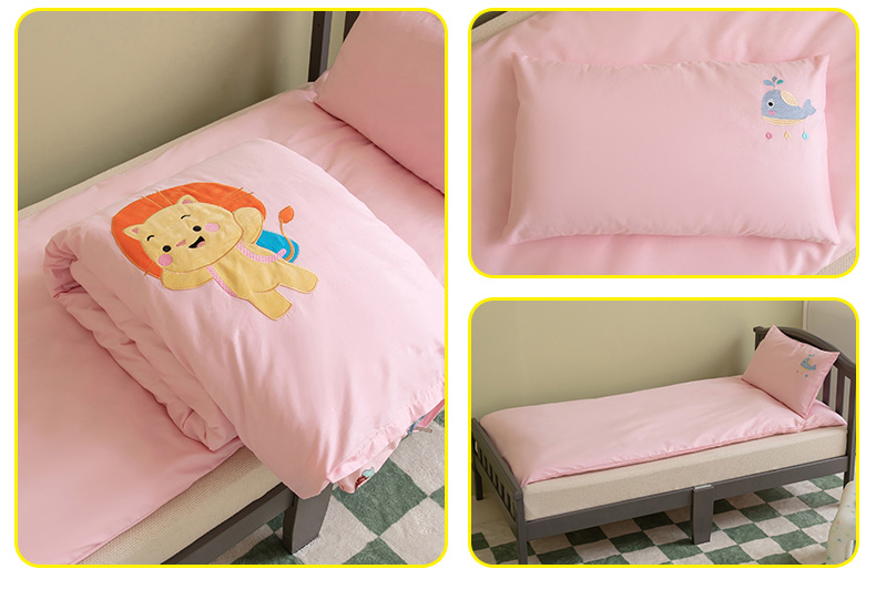 当前位置: 91家纺网 > 商品网购 > 床品套件 > 三件套 > 喜多兔 2023新款40支13372纯棉小小梦绣花幼儿园被子三件套 粉色狮子宝贝