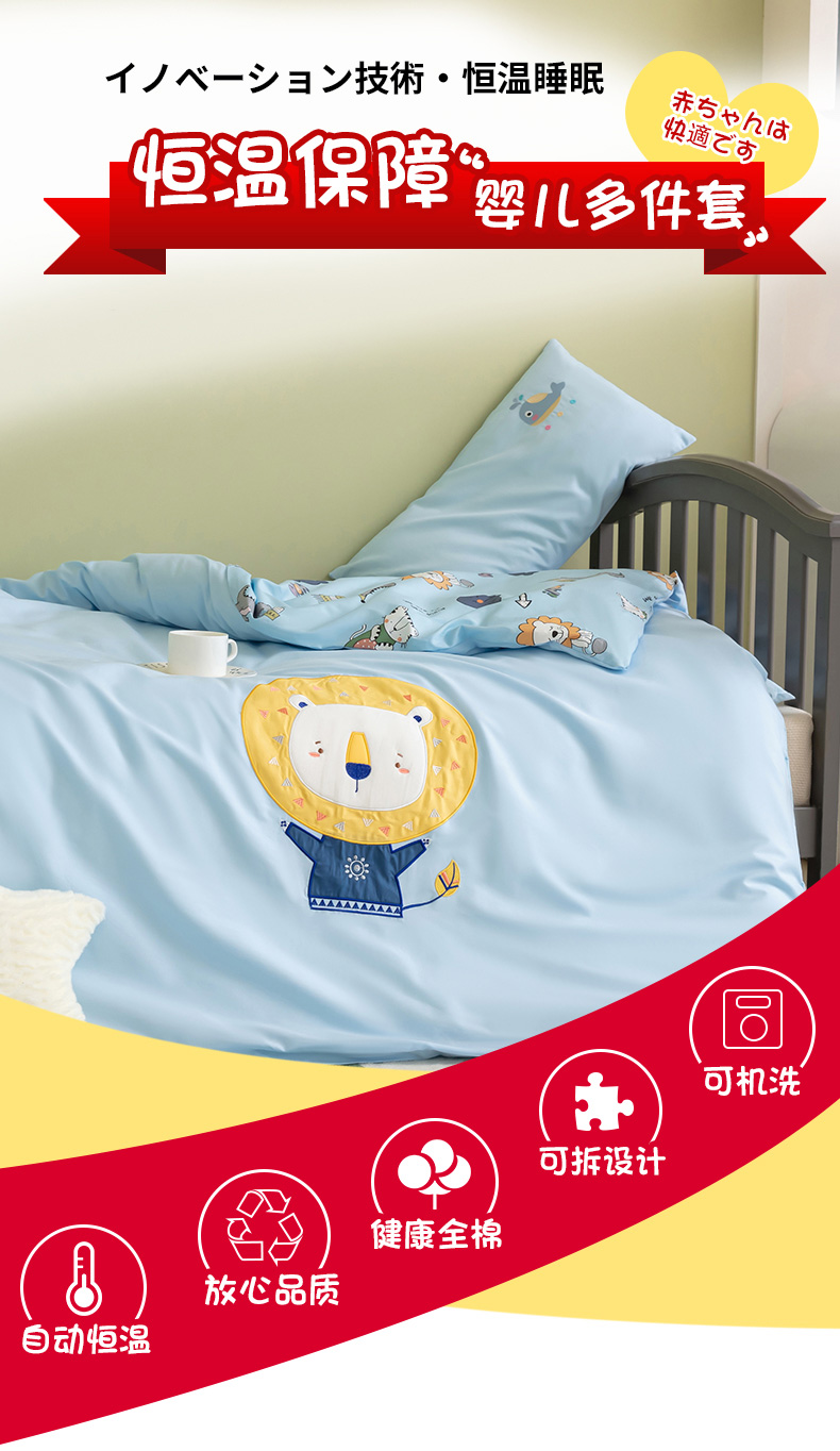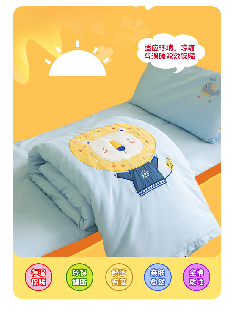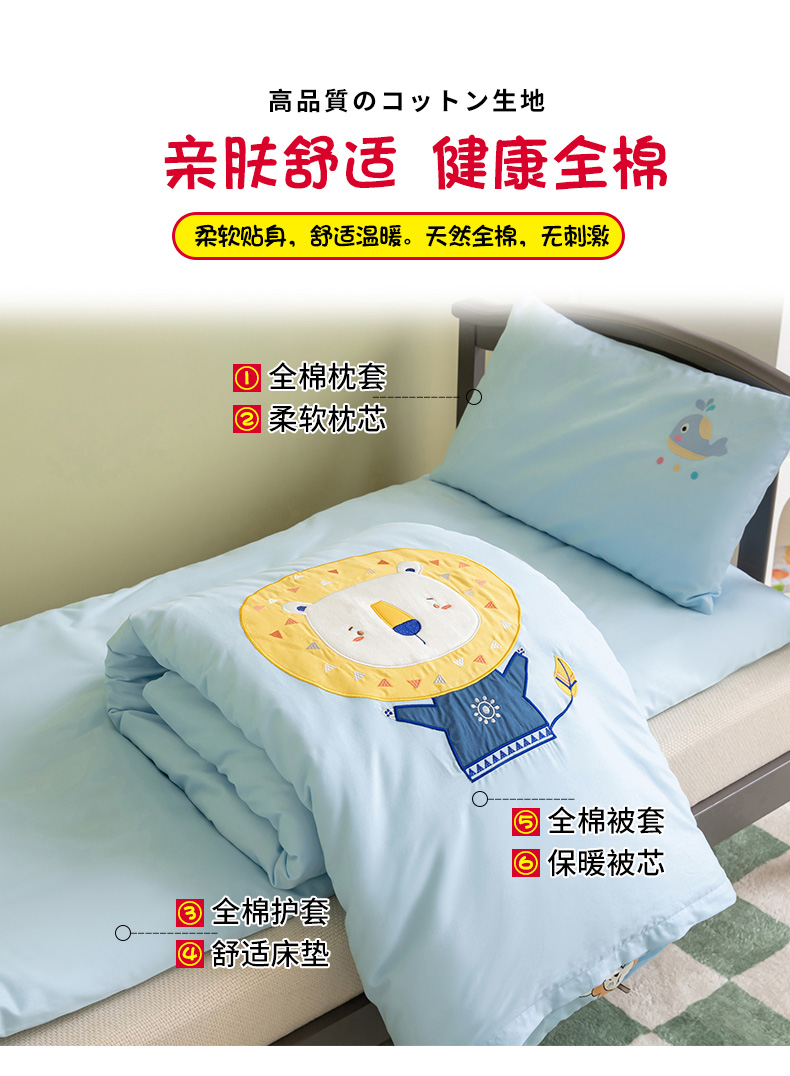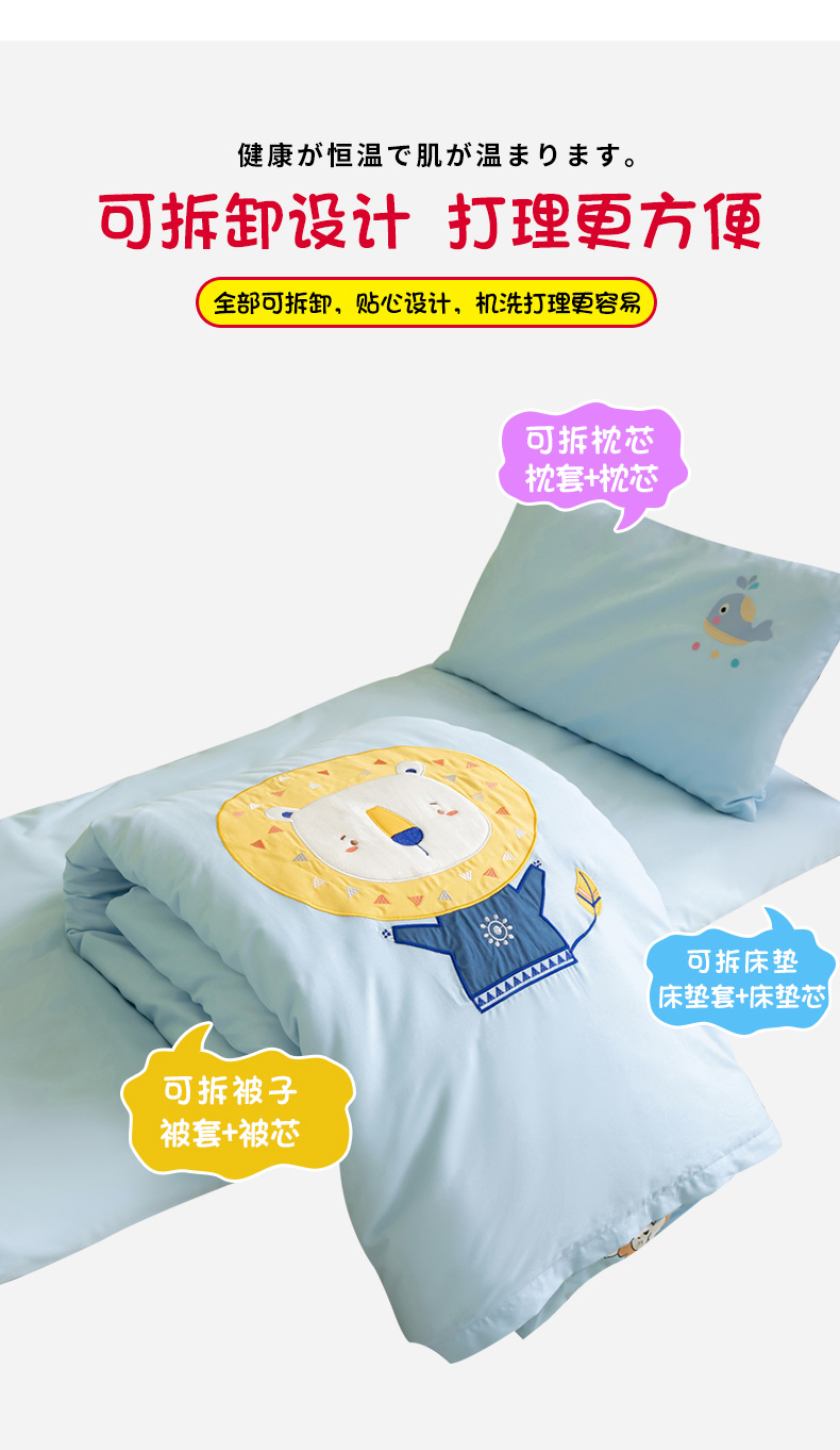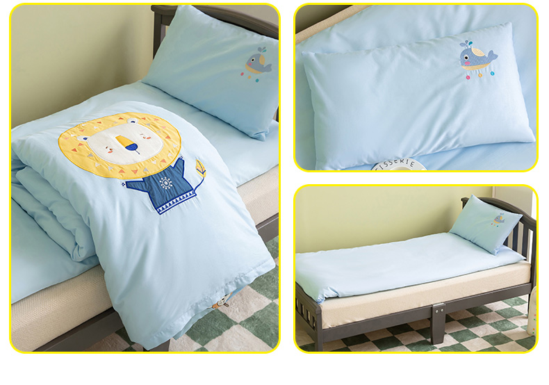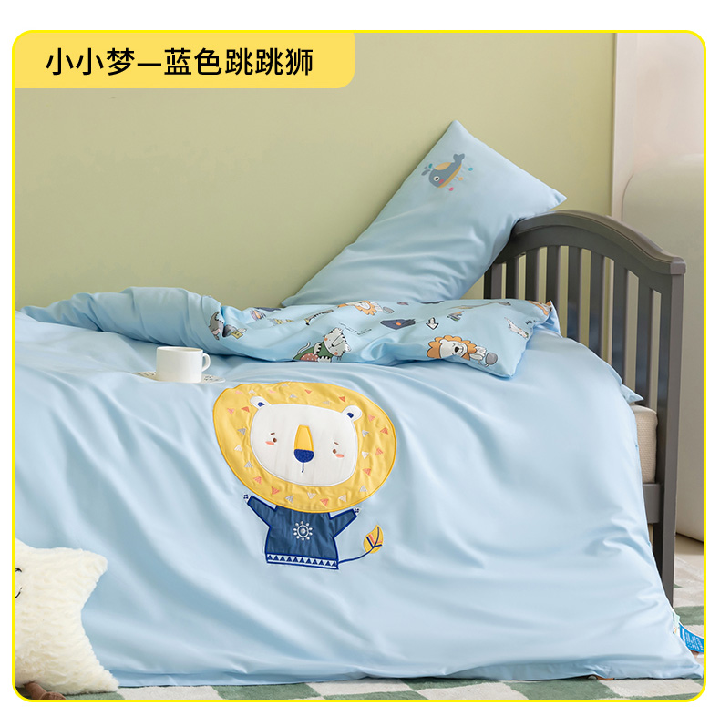 当前位置: 91家纺网 > 商品网购 > 床品套件 > 三件套 > 喜多兔 2023新款40支13372纯棉小小梦绣花幼儿园被子三件套 蓝色跳跳狮
