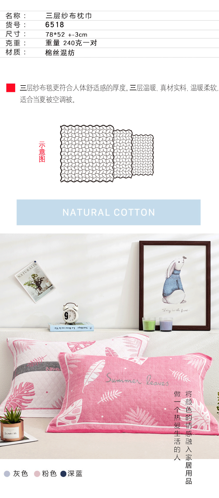 • 91家纺网 家纺一手货源 找家纺 朴尔家纺-毛巾被 2023新款混纺三层纱布枕巾详情图 热带草原-粉