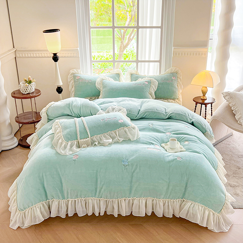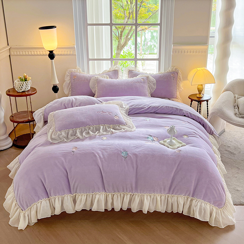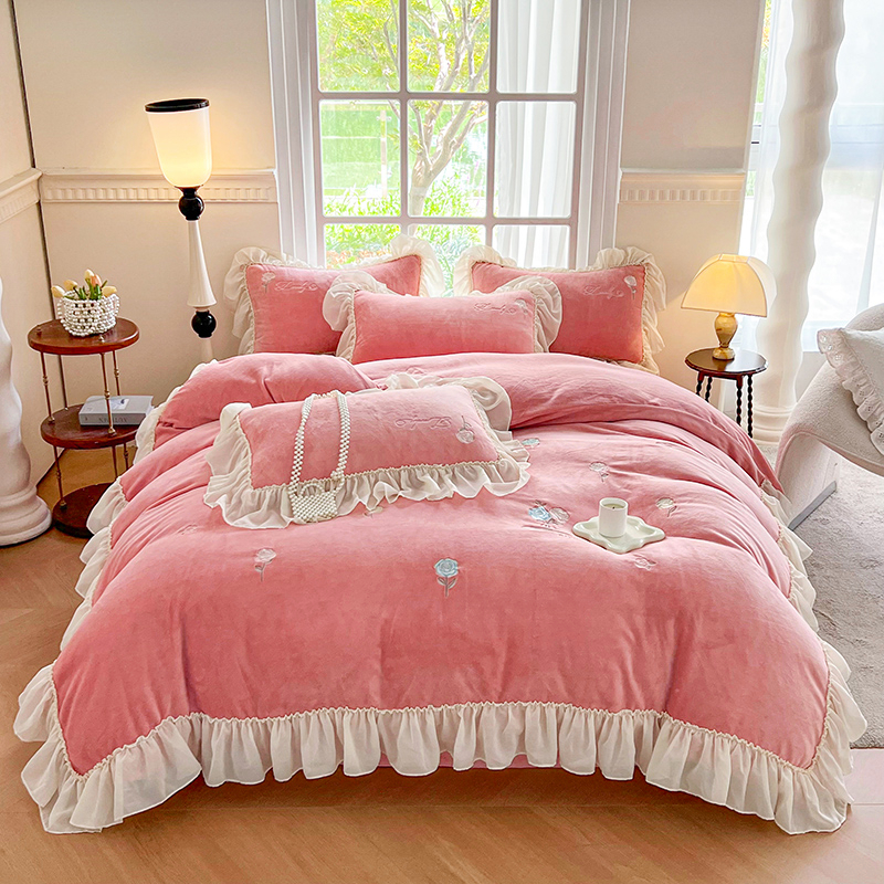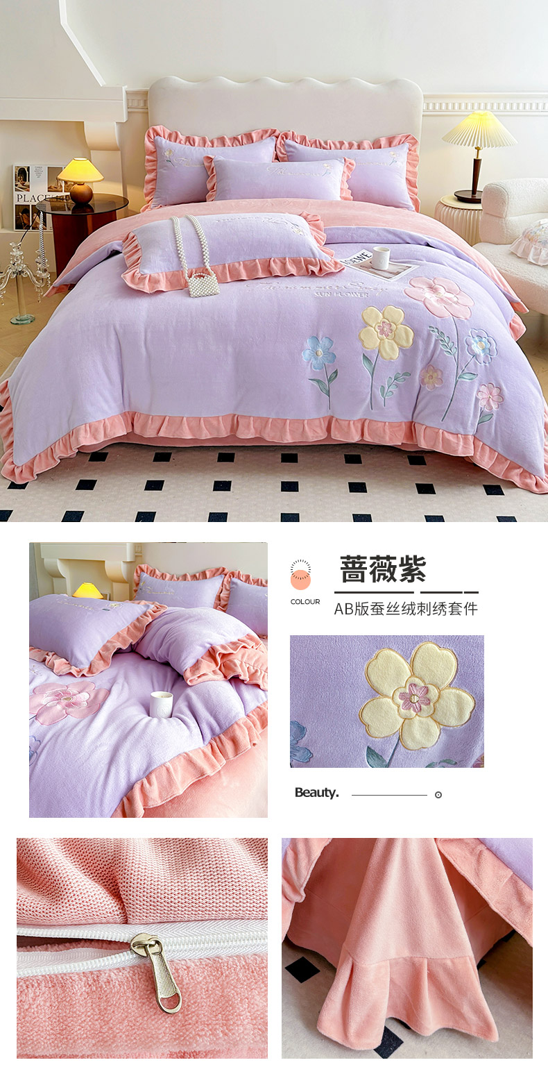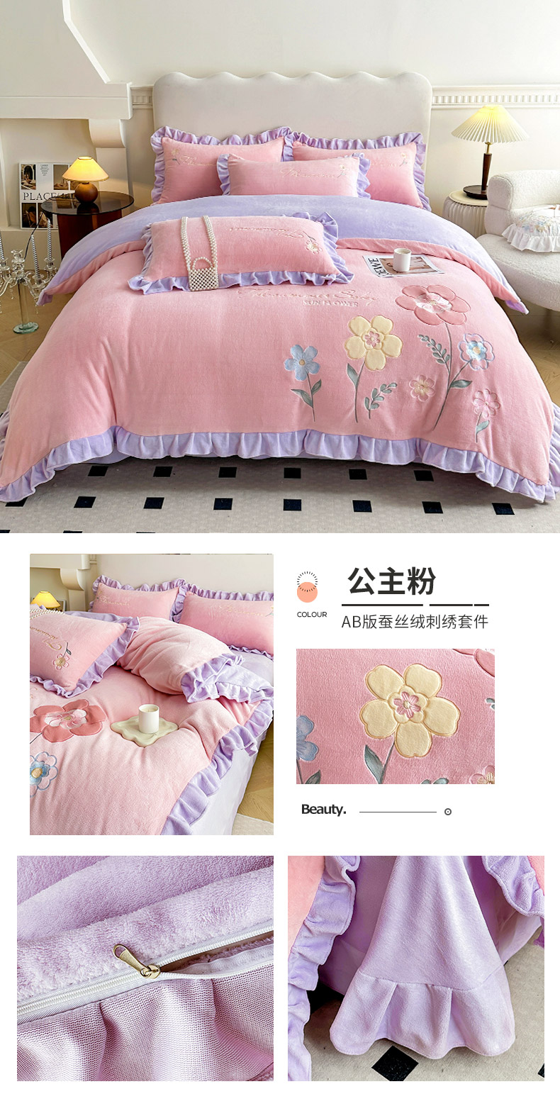 商品名称:(总)可以家居 2023新款高克重牛奶绒绣花花边款四件套汇总