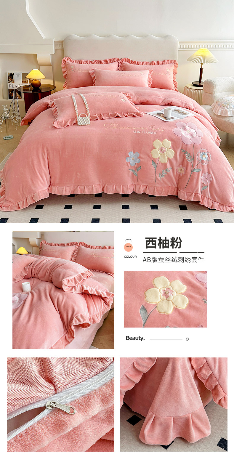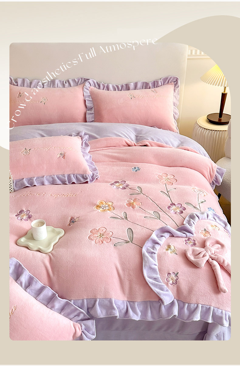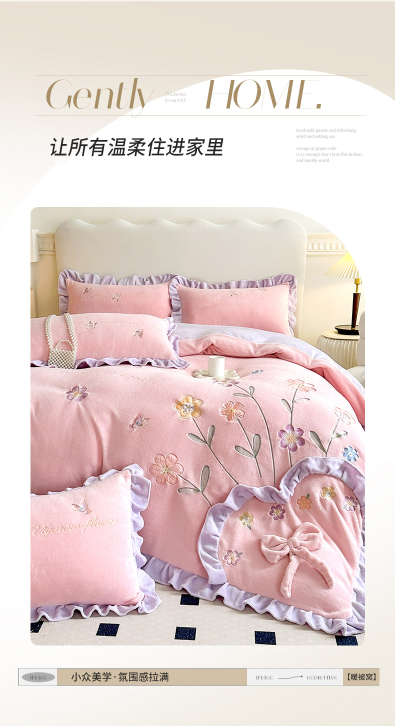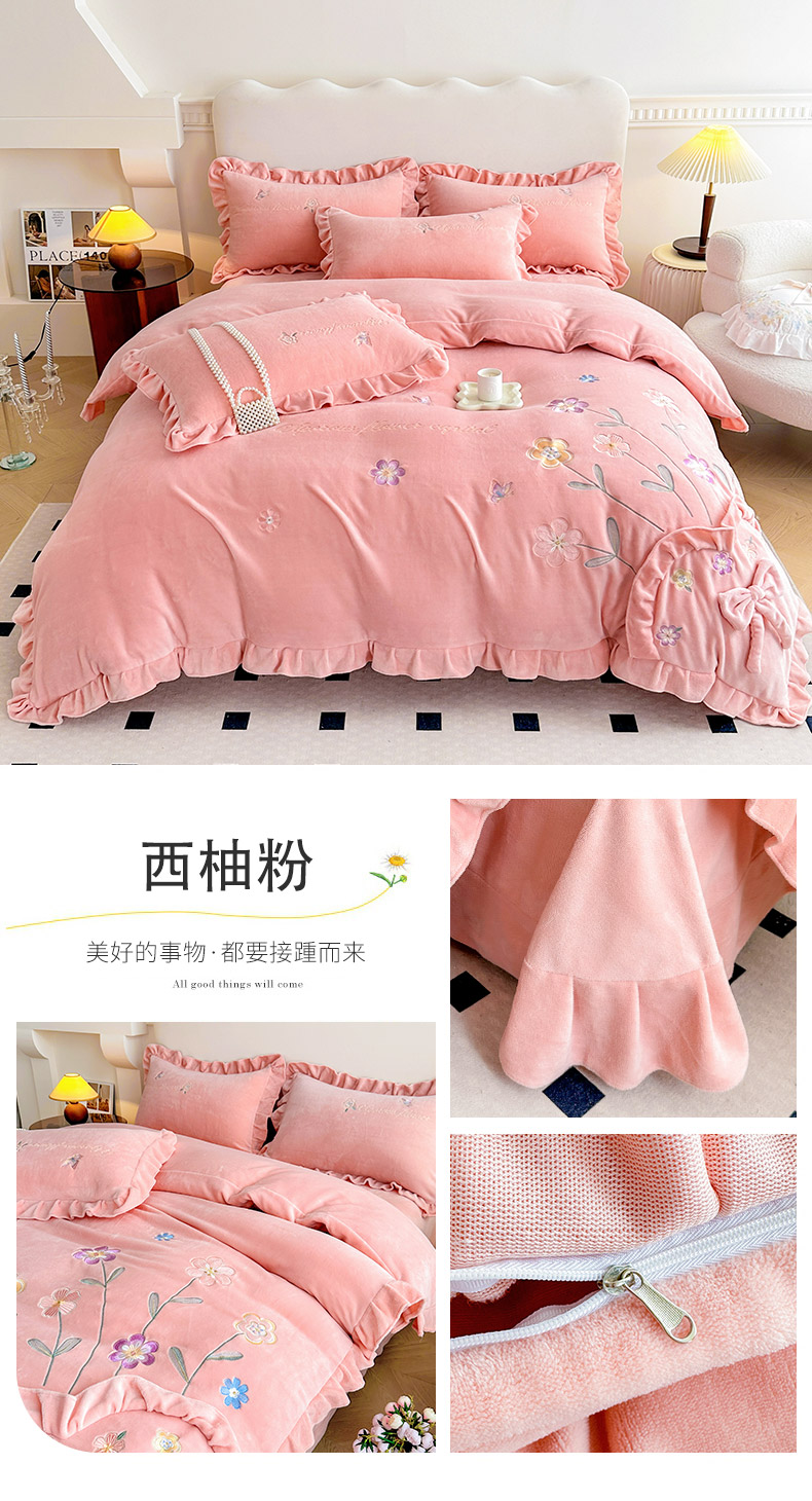 (总)可以家居 2023新款高克重牛奶绒绣花花边款四件套汇总