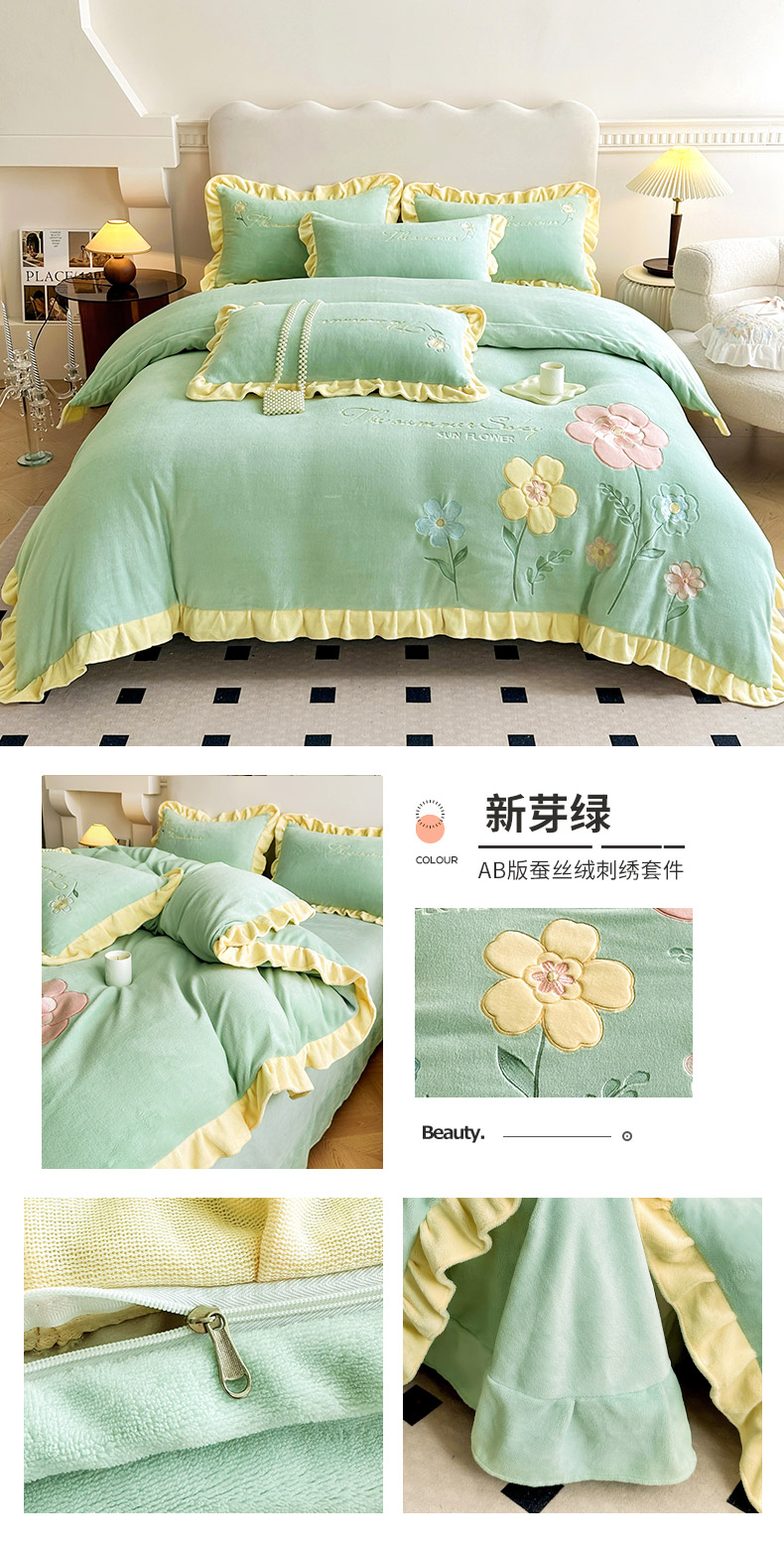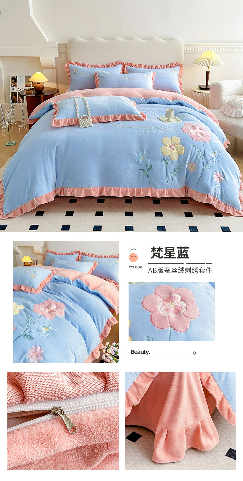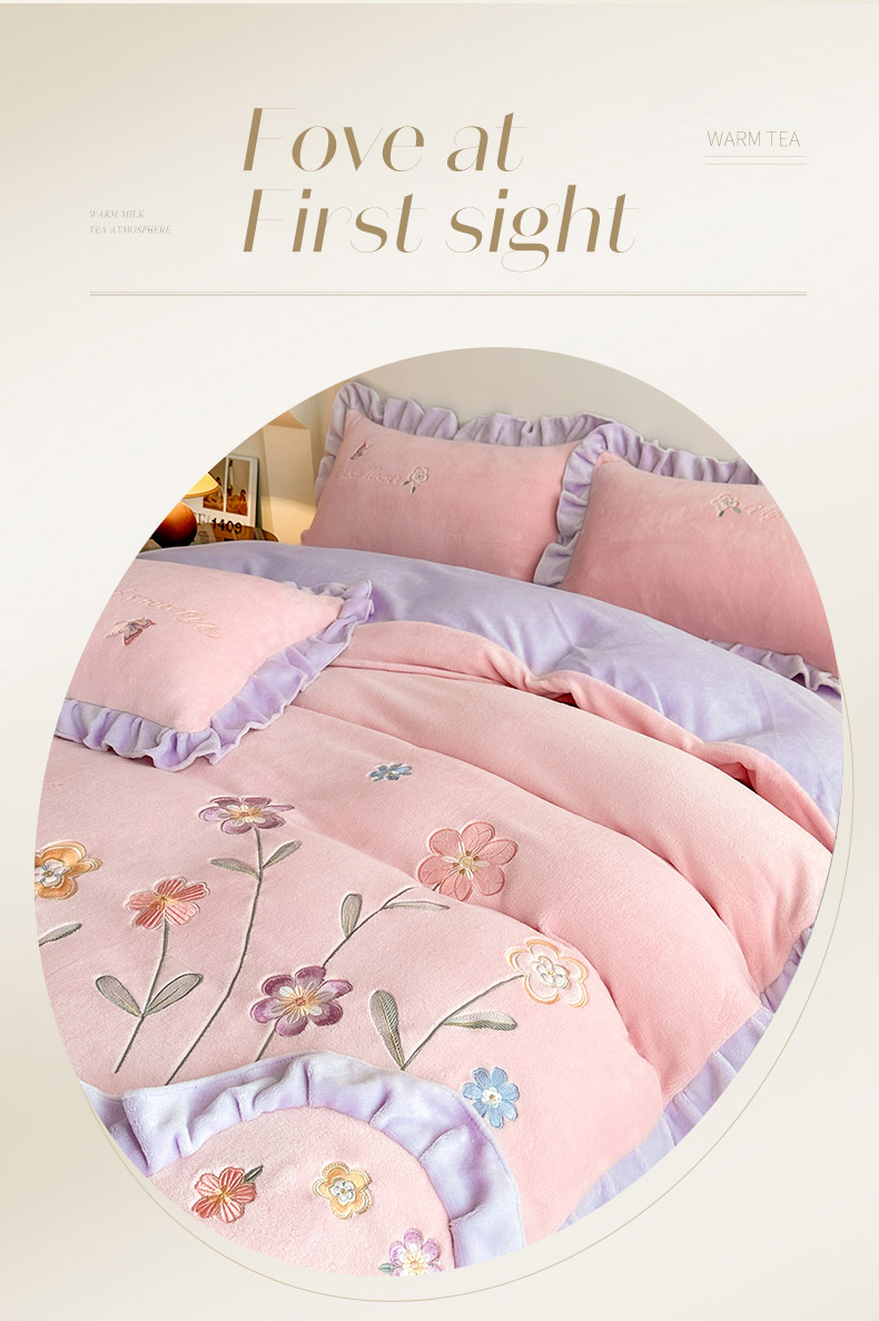 (总)可以家居 2023新款高克重牛奶绒绣花花边款四件套汇总