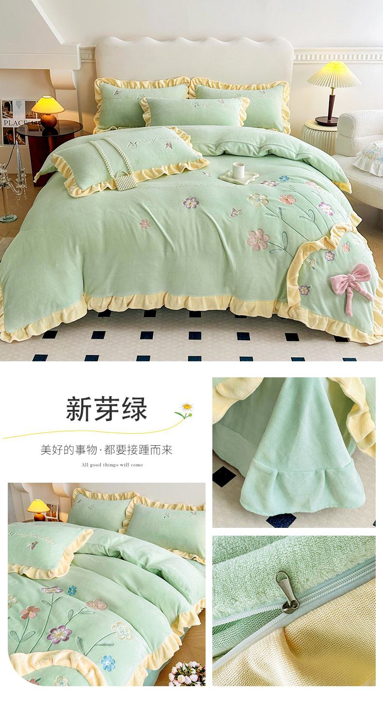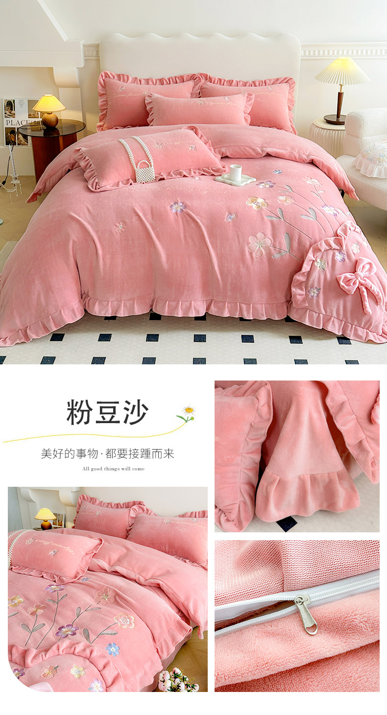 (总)可以家居 2025新款高克重全消光超细旦奶芙云绒四件套-玛利亚系列,粉豆沙,贵族粉,新芽绿