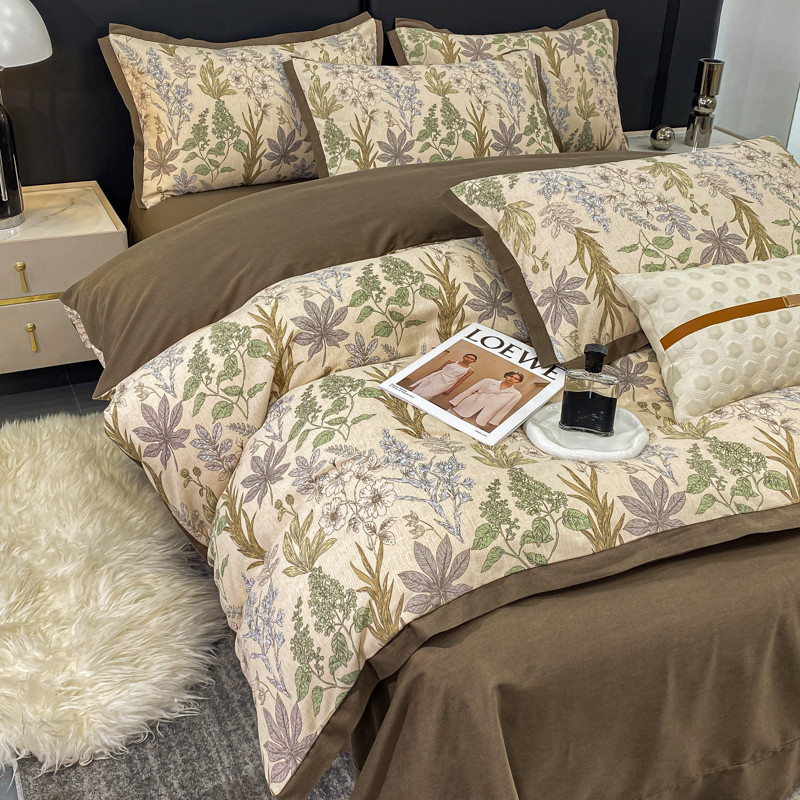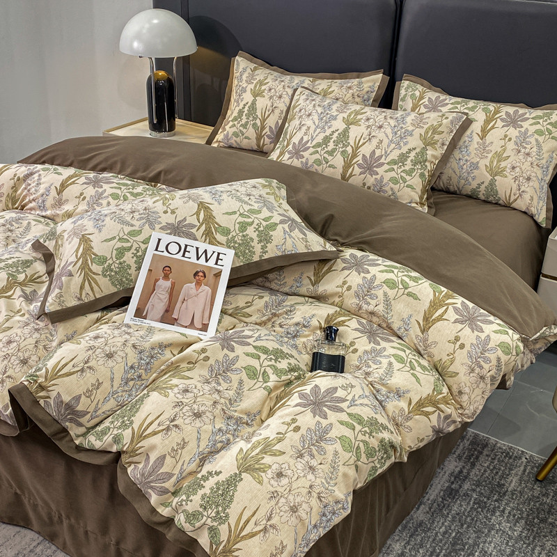 仟网汇 2023新款纯棉磨毛加厚喷气印花拼角四件套 晨晓
