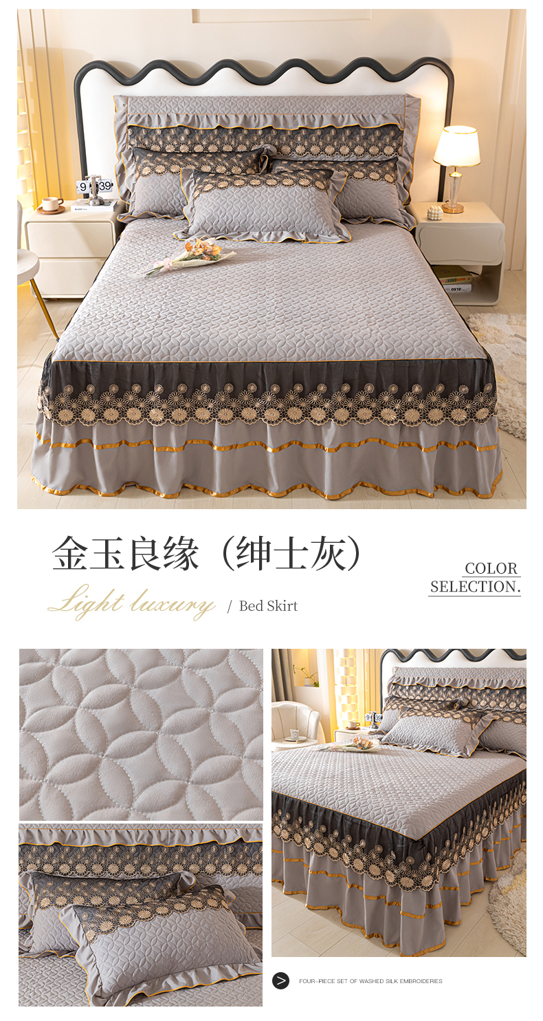当前位置: 91家纺网 > 商品网购 > 床品套件 > 三件套 > 靓生活 2023新款夹棉绗缝床裙三件套-金玉良缘 绅士灰