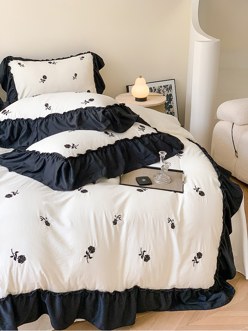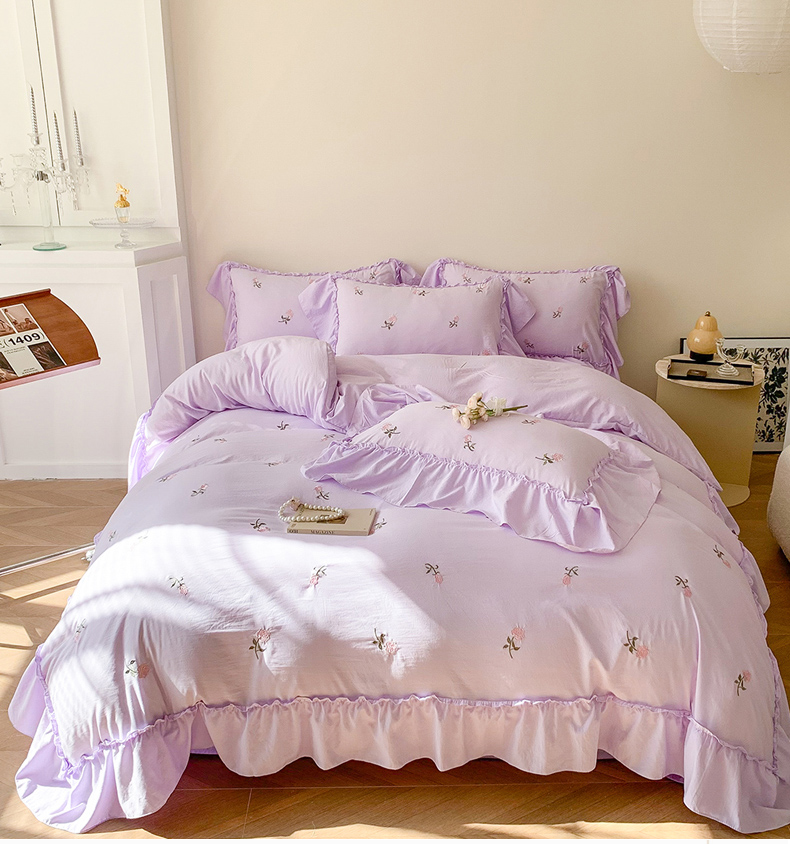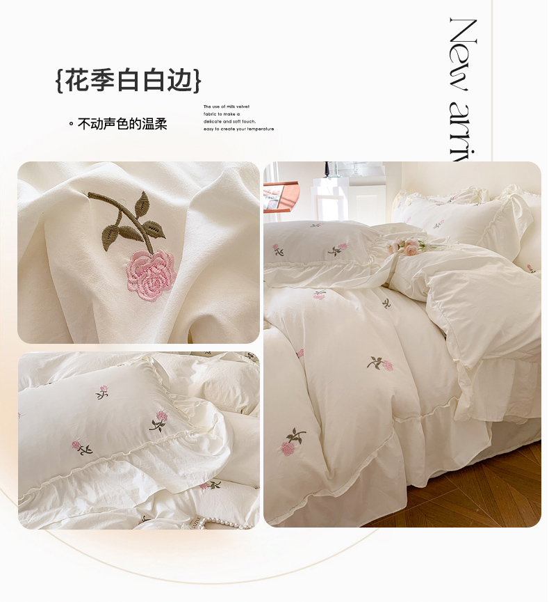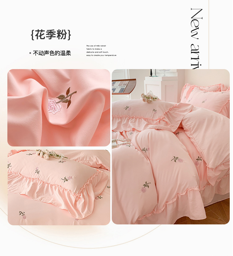 商品名称:(总)你好美丽 2025新款水洗棉满版刺绣大宽花边款四件套-花季