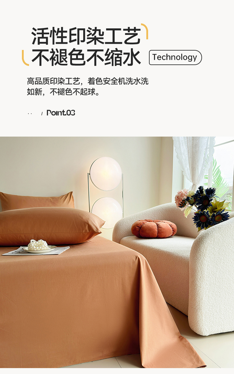 寝柔家纺 2024新款40S全棉斜纹13372纯棉纯色套件单品-单床单 (风格一) 中咖