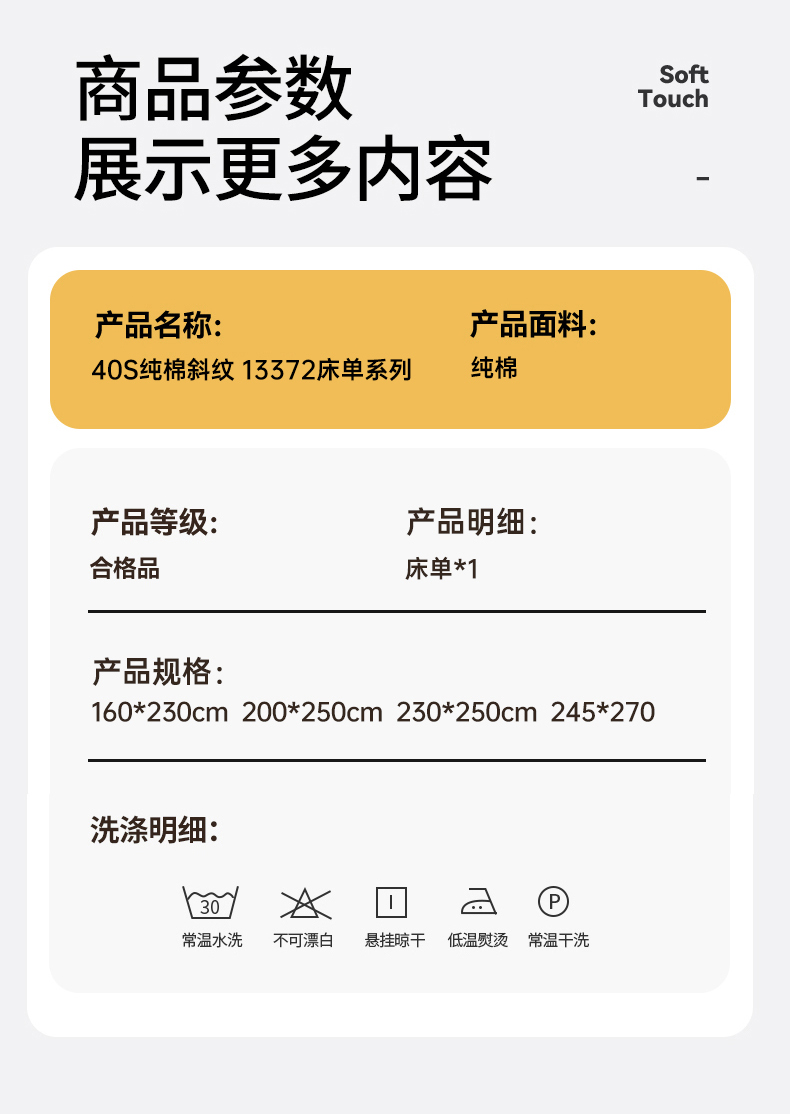 商品名称:寝柔家纺 2024新款40S全棉斜纹13372纯棉纯色套件单品-单床单 (风格一) 中咖