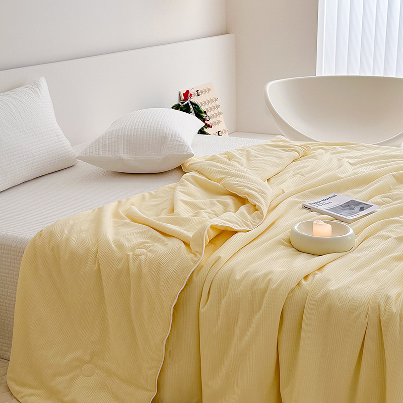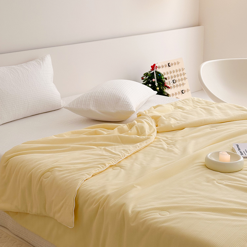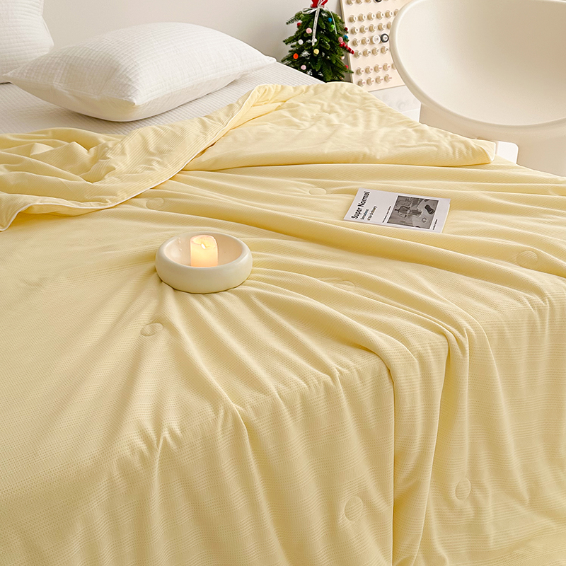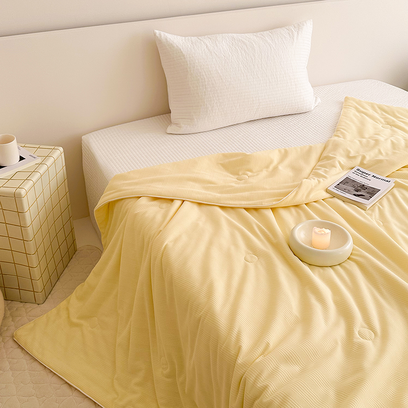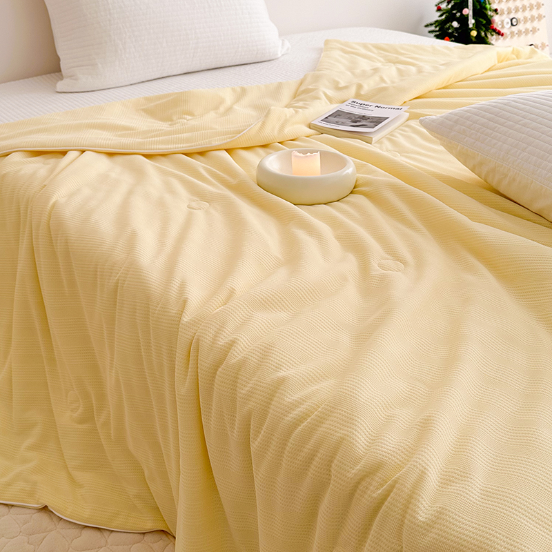 (总)珺柔 2023新款凉感丝纯色夏被--嵌绳系列,金黄,深蓝,水绿,天蓝