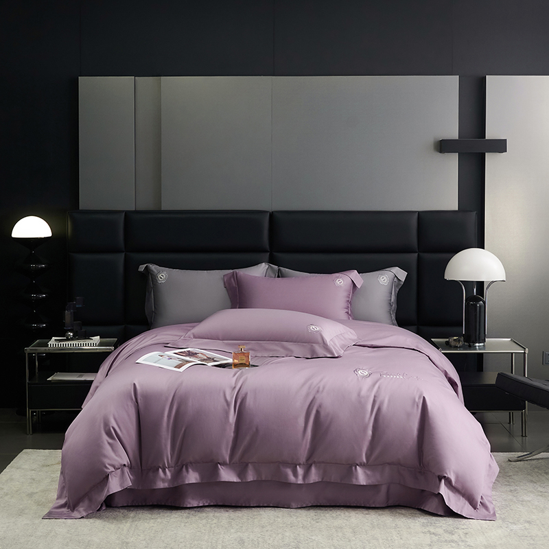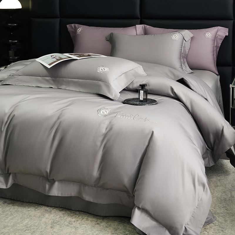 总榻尚家居 2023新款格瑞斯系列100贡缎长绒棉四件套工艺款四件套,格瑞斯紫,格瑞斯白,格瑞斯灰,格瑞斯蓝