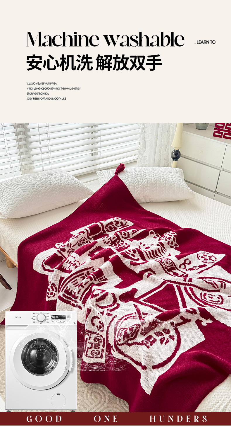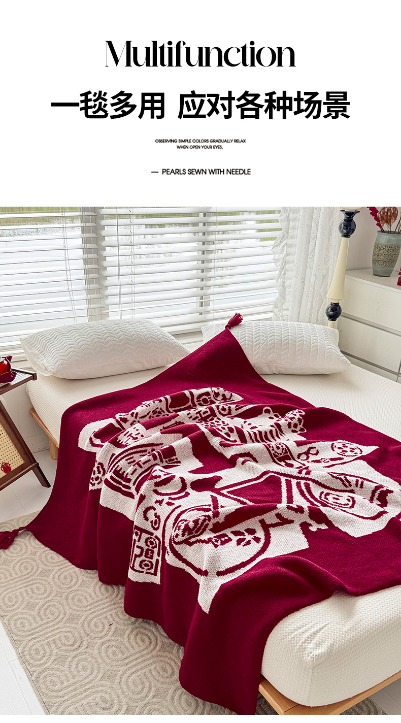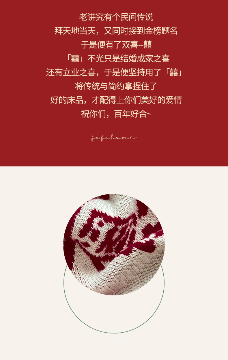 当前位置: 91家纺网 > 商品网购 > 毛毯休闲毯绒毯 > 毛毯 > 栩裕纺织 2024新款中式风高端婚礼喜字毛毯(可定制) 针织喜-复古喜字盖毯
