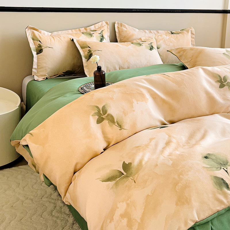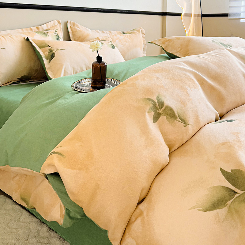 梦卓家纺 2025新款直播加厚植物羊绒四件套高克重磨毛跨境四件套 大量现货叶之秋,叶之秋