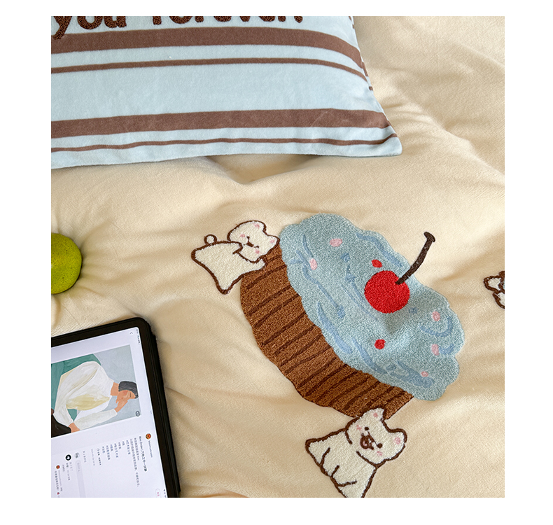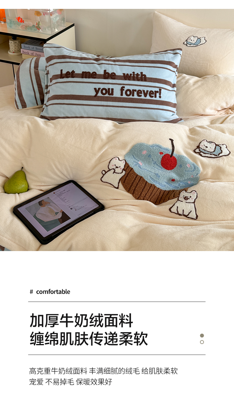 (总)暖生活 2025新款高克重细颗粒羊羔绒牛奶绒毛巾绣四件套,梅梅熊,童年时光-兰,童年时光-米,小短腿