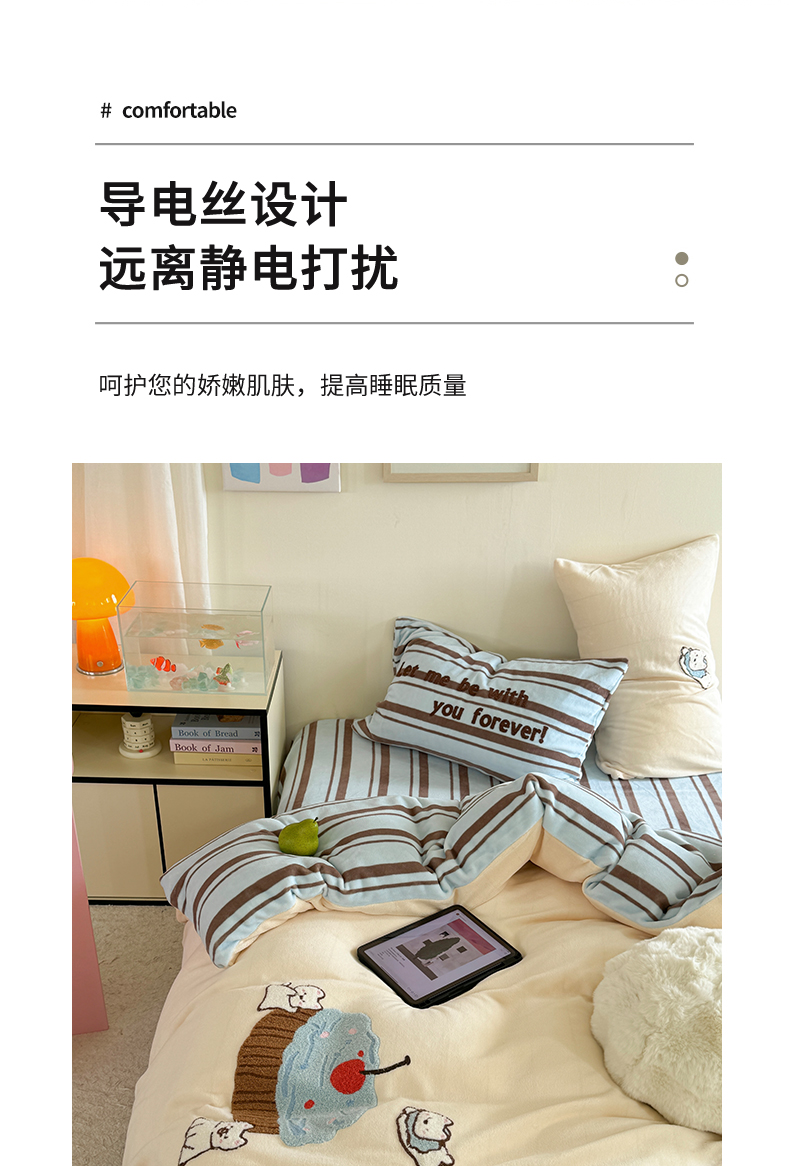 (总)暖生活 2025新款兔绒贴布绣牛奶绒套件四件套(会员-5),小泰迪,红围巾小狗,线团小猫,泳圈企鹅