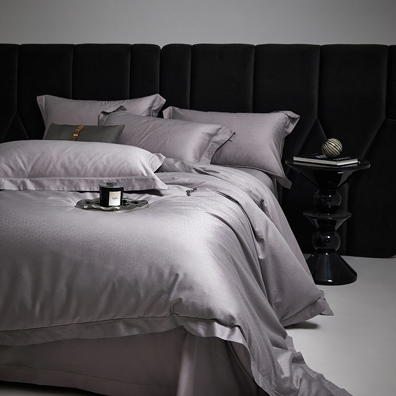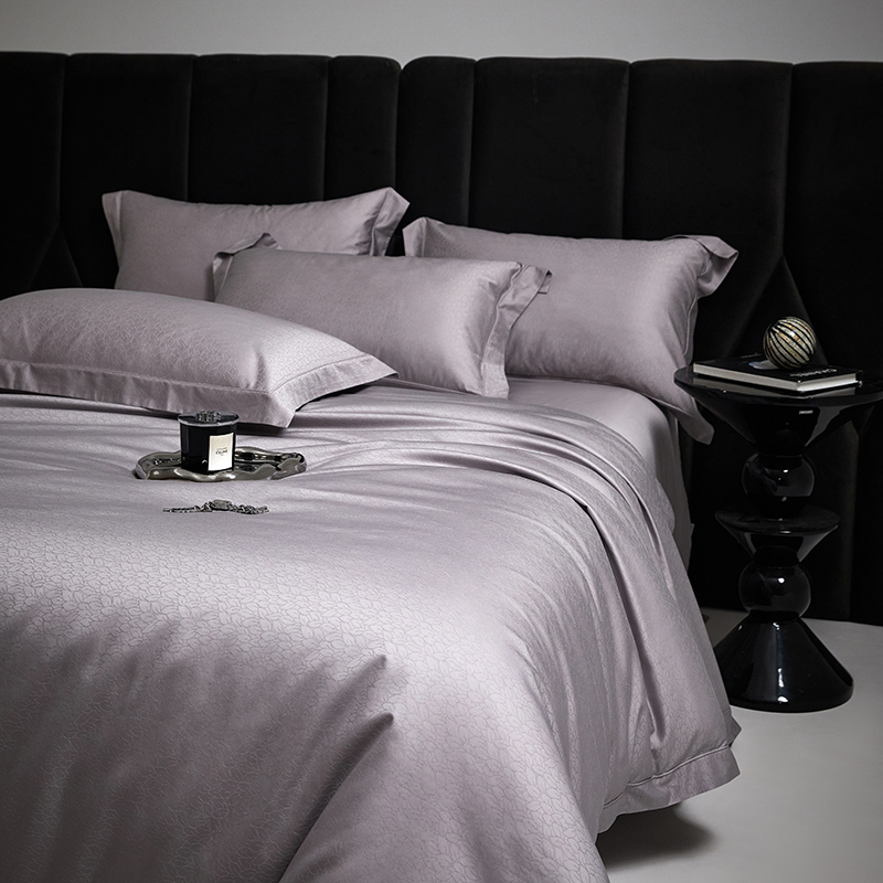 总榻尚家居 2023新款格瑞斯系列100贡缎长绒棉四件套工艺款四件套,格瑞斯紫,格瑞斯白,格瑞斯灰,格瑞斯蓝