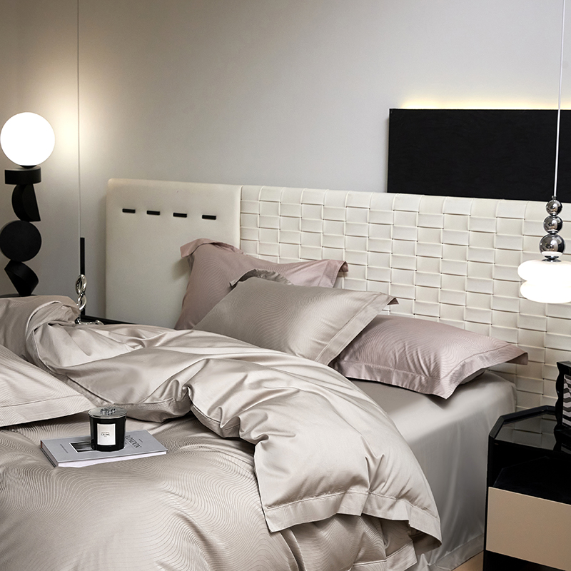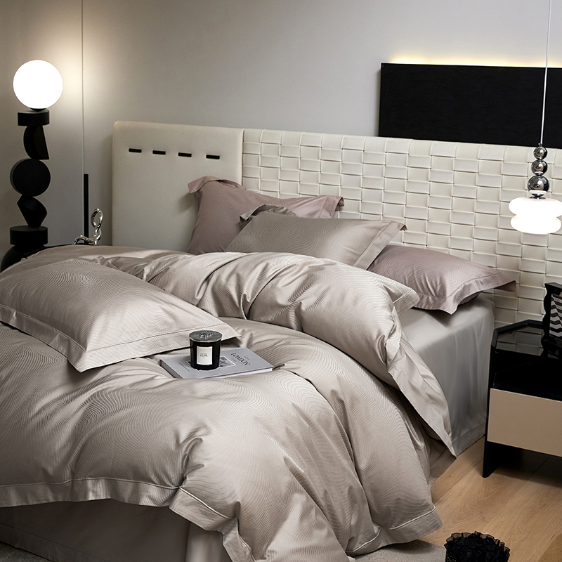 榻尚家居 2025新款长绒棉贡缎提花手工立体埋绳工艺四件套礼盒包装 夜光曲(香槟色)