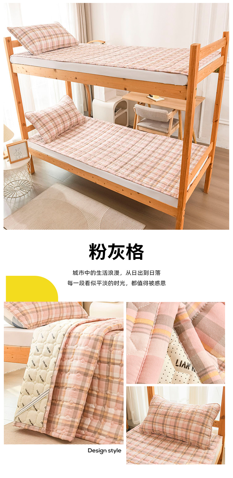 商品名称:恋绒家纺 无印风高低床学生床褥水洗棉宿舍上下铺软床垫 粉灰格