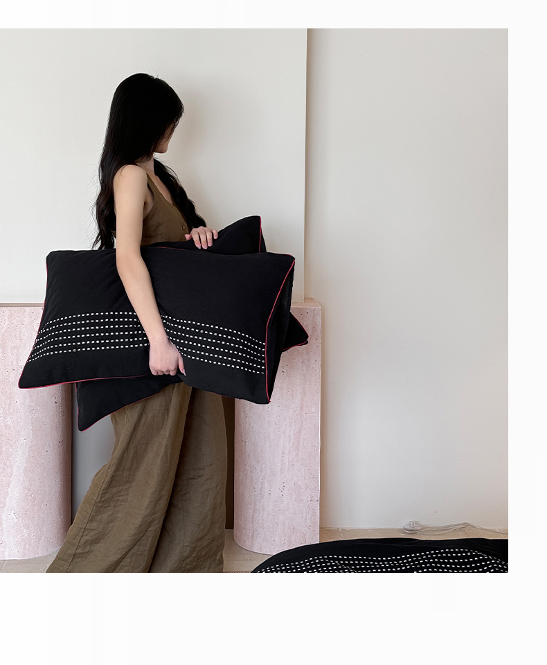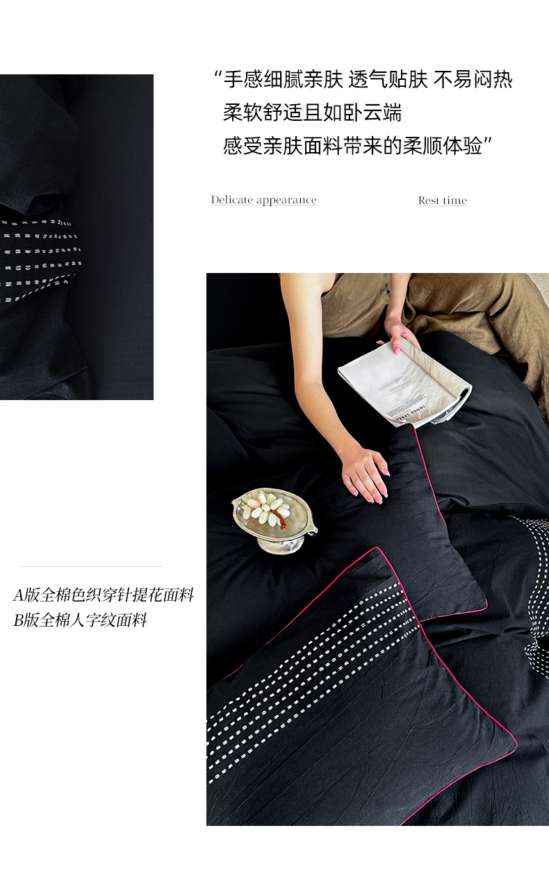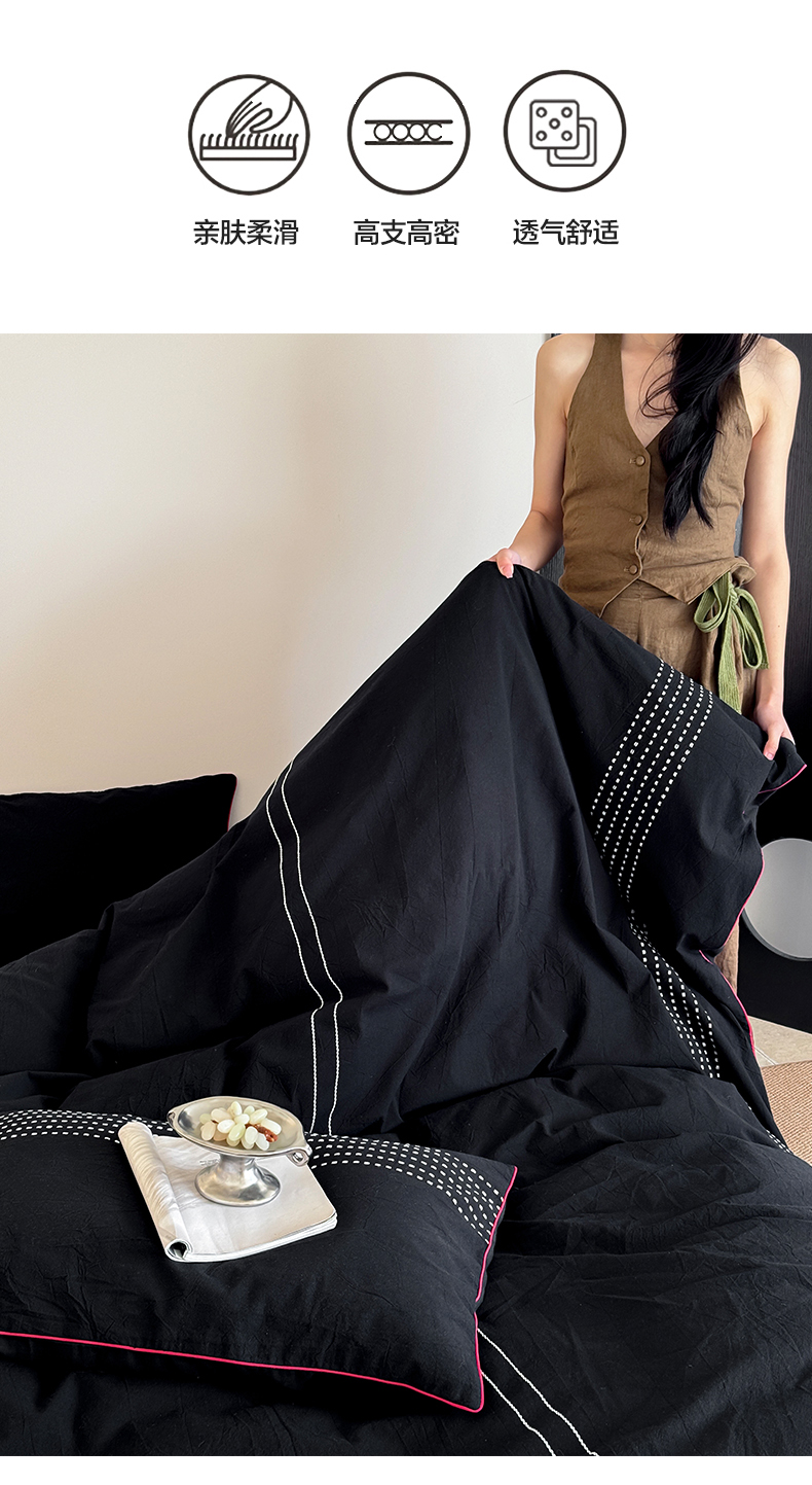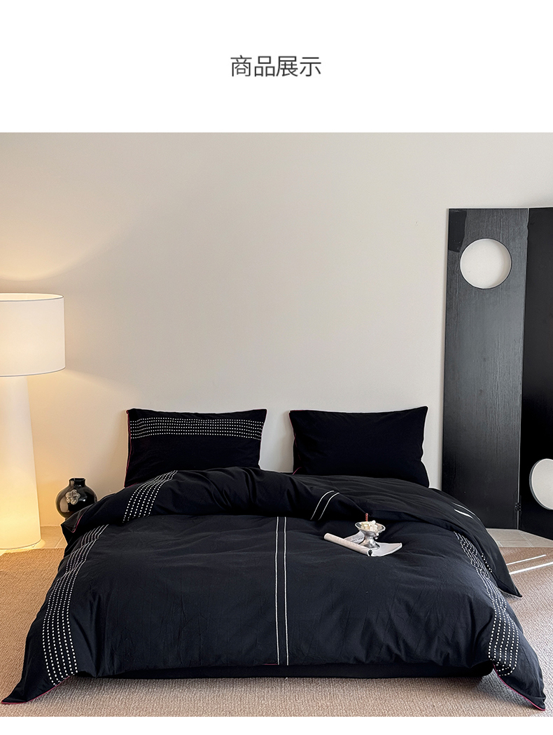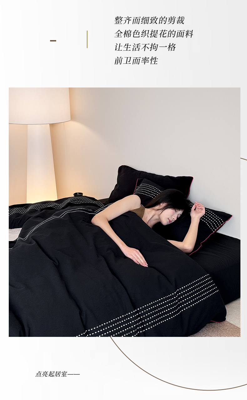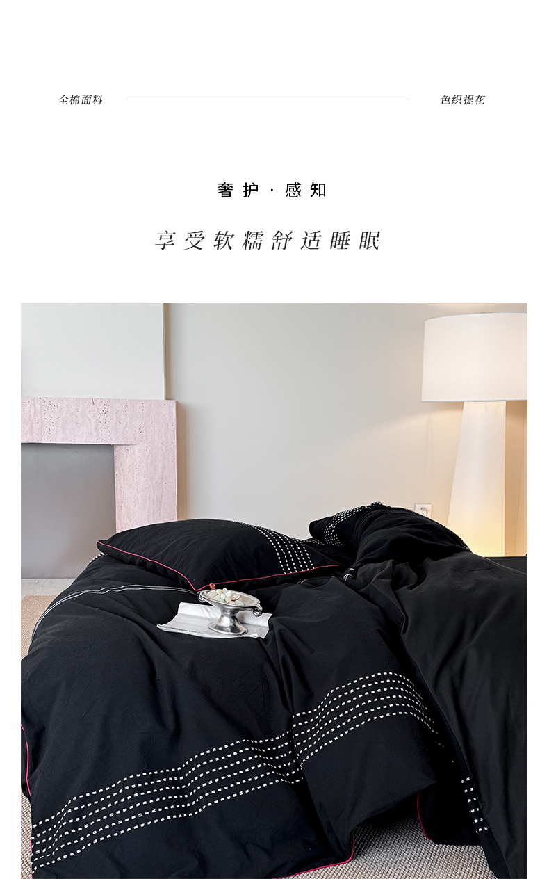 商品名称:山舍家居 2025新款全棉色织穿针提花四件套-久野 久野-黑