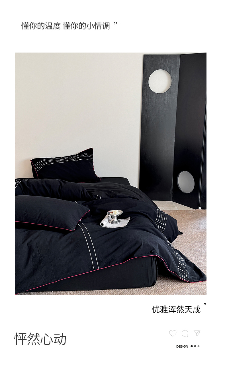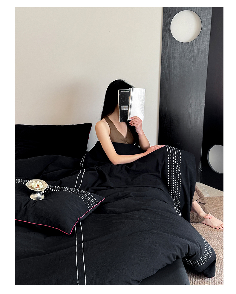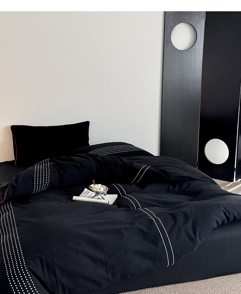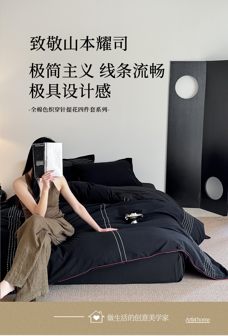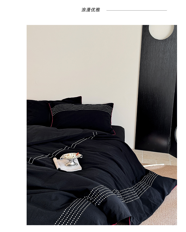 山舍家居 2025新款全棉色织穿针提花四件套-久野 久野-黑