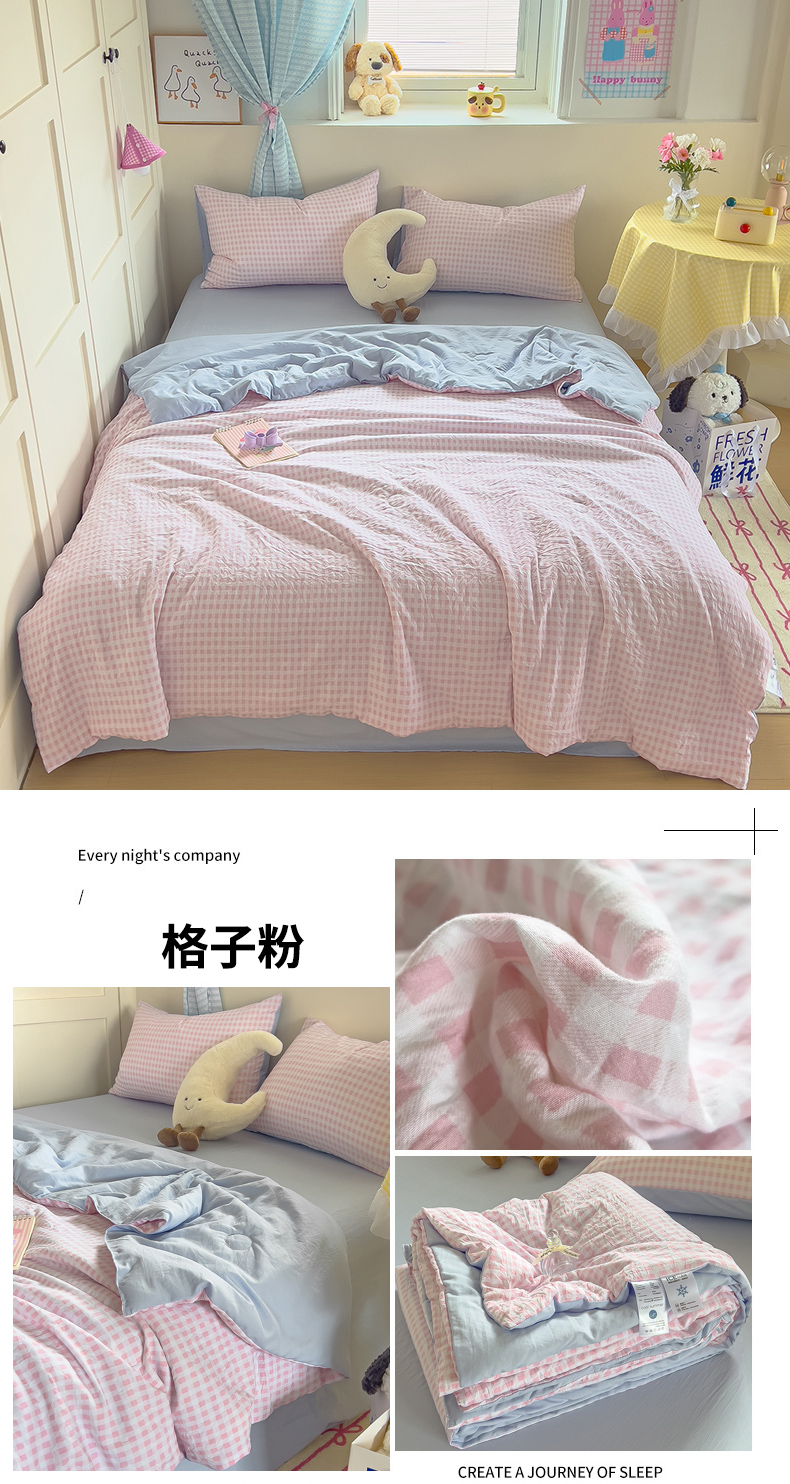 被子 > 夏被 > N先生+V 13814689556 发大图/买家秀 2025新款云朵棉皱皱纱夏被夏凉被空调被 格子粉