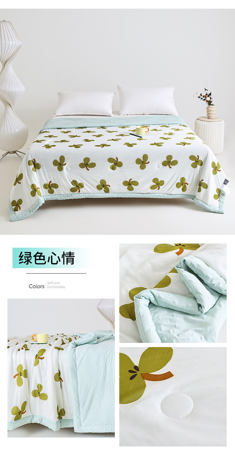 商品名称:默忆 2025新款印花凉感丝夏被夏凉被空调被加氨纶豆豆被 绿色心情