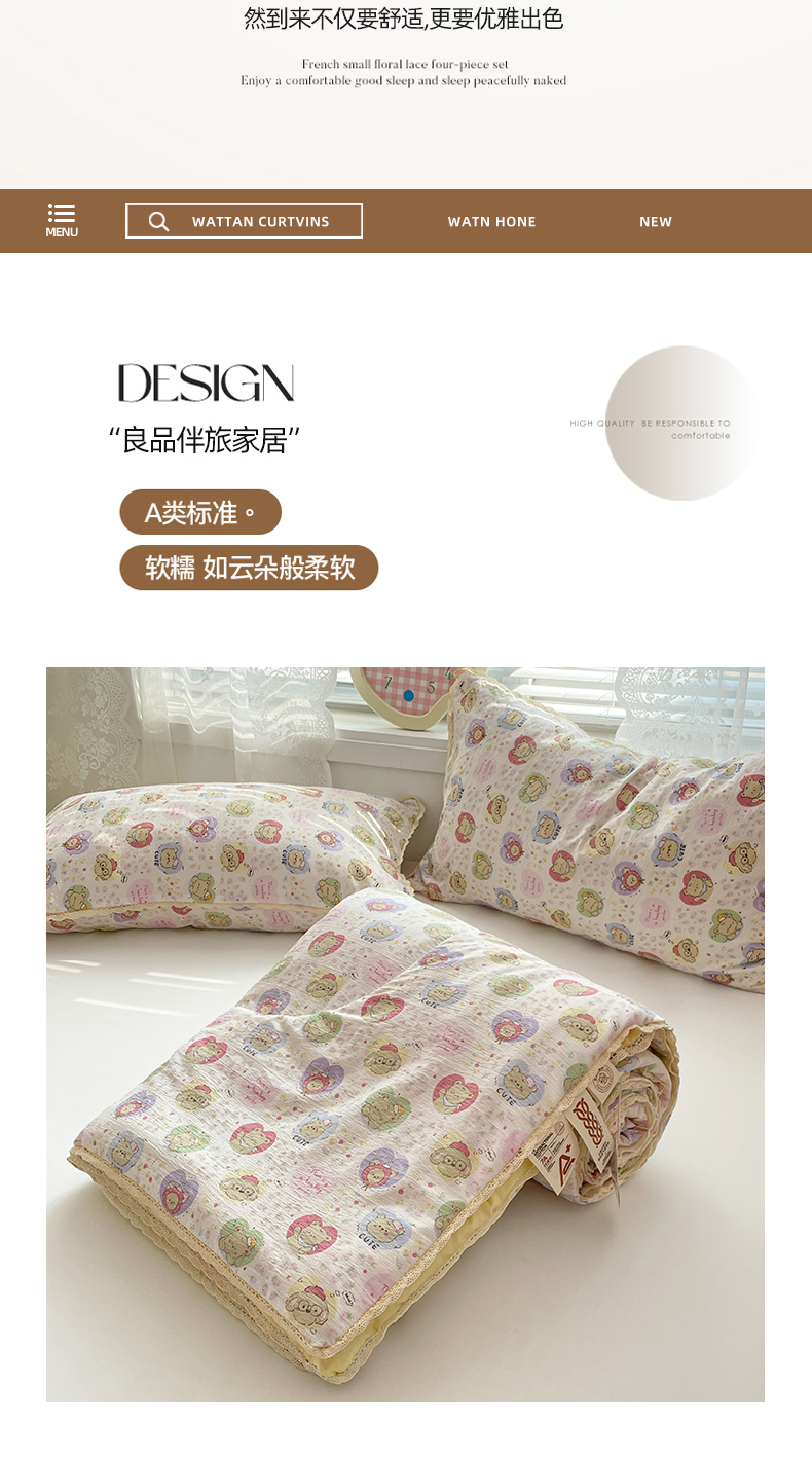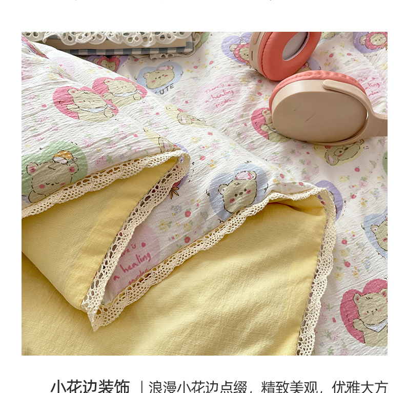 商品名称:优承佳生活馆 2025新款云感双层纱浪漫小花边抗菌夏被子被芯 心动汪崽