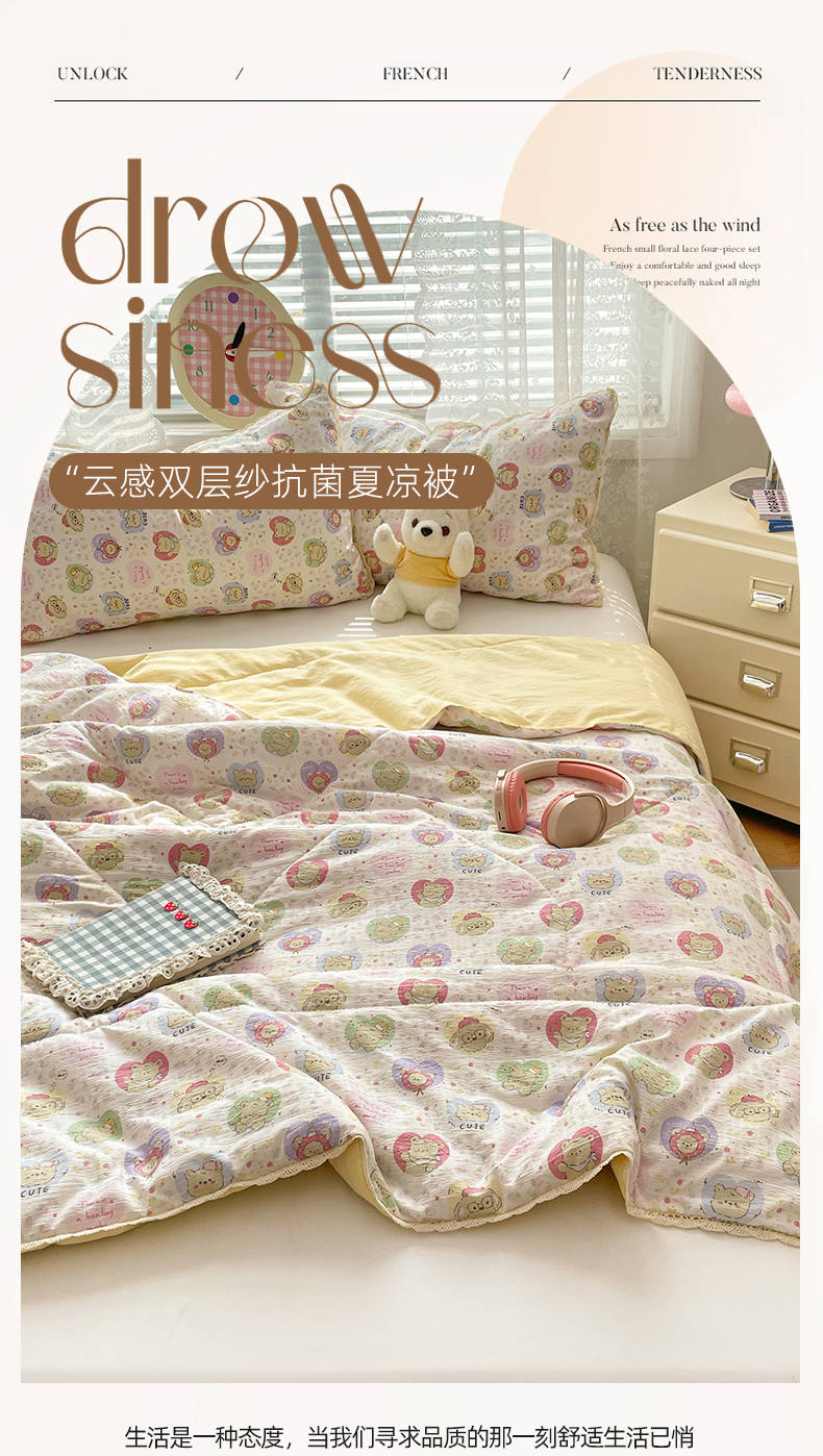 (总)优承佳生活馆 2025新款云感双层纱浪漫小花边抗菌夏被子被芯,安妮熊,黛绮丽,草莓酱,彩色波点,曲奇熊,山茶物语,KT猫,爱心蝴蝶结,花园兔,田园牧歌,郁金香,贝拉米,阿纳亚,字母结,心动汪崽,熊熊手帐,花枝摇曳,樱桃红