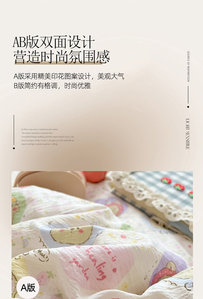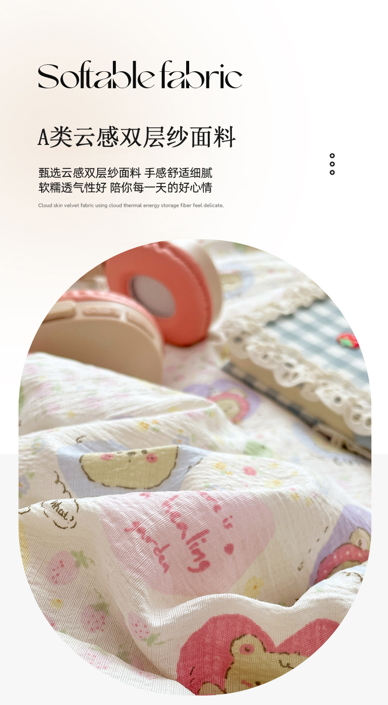 (总)优承佳生活馆 2025新款有氧超柔云感双层纱三件套四件套单被套 场景一,彩色波点,草莓甜筒,查弥,春日,花影枝,花枝摇曳,萌宝派对,梦幻萌宠,千千结,巧克力豆,时尚风向,甜心莓,心动汪崽,熊熊乐园,熊熊手账,樱桃结