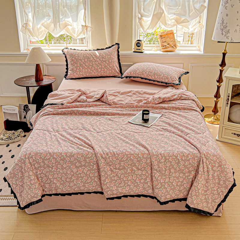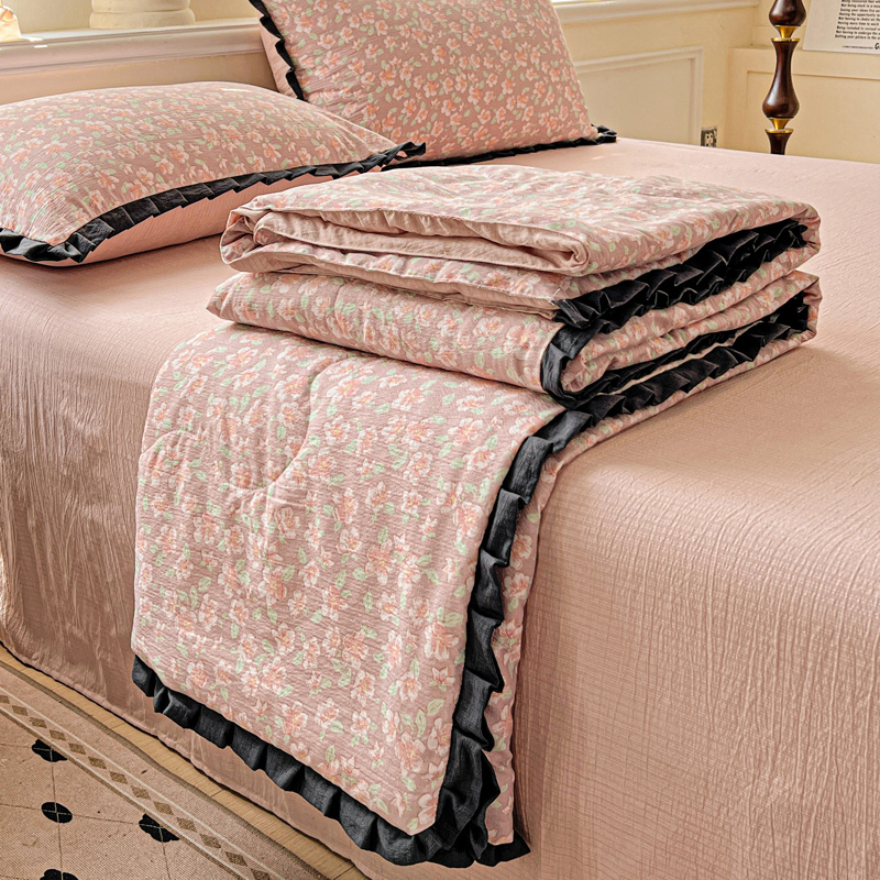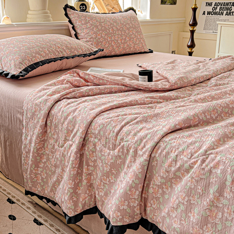 仟网汇2025新款赫本风花边夏被空调被 春风里红