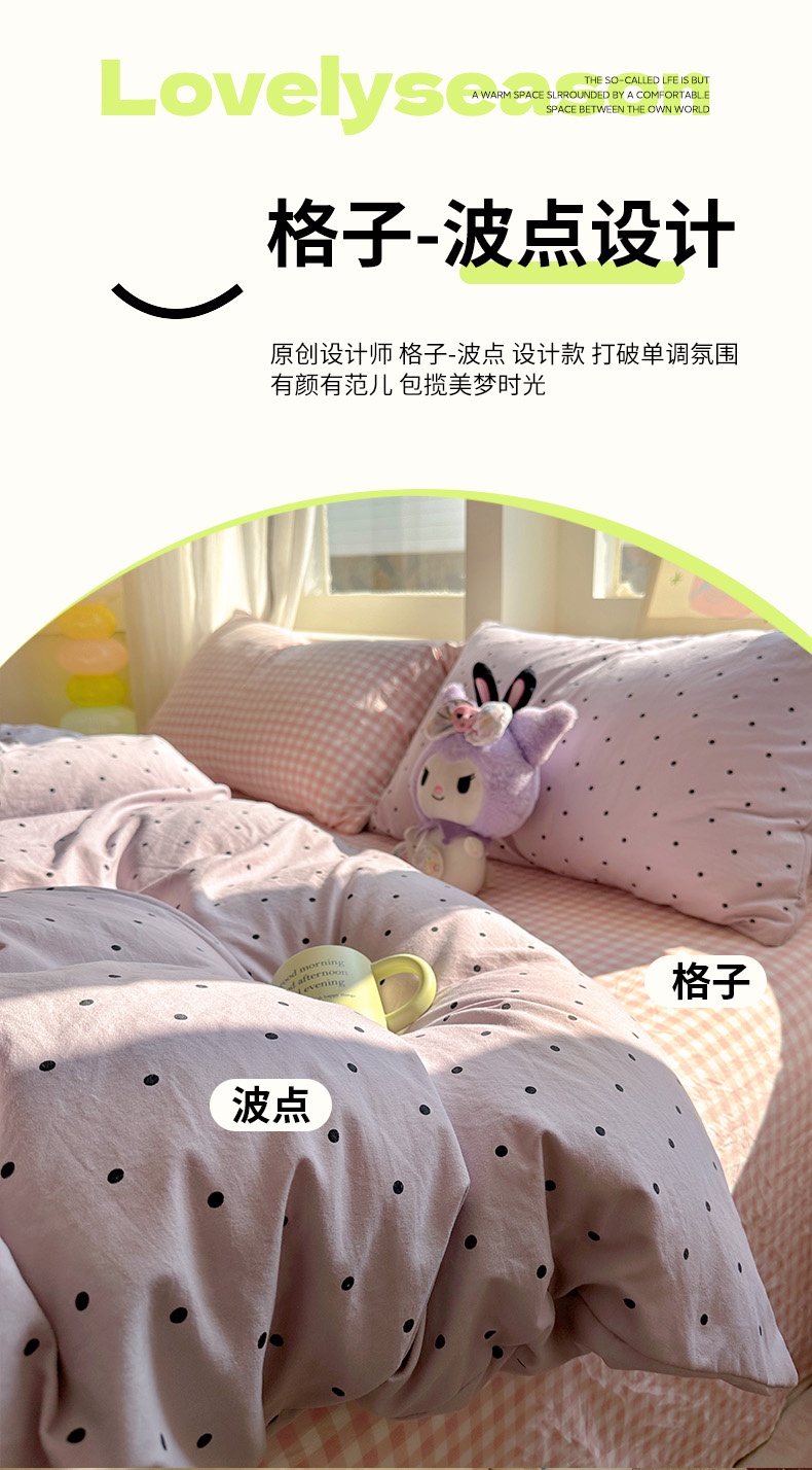 (总)冕悠家纺 2025新款A类加厚水洗棉格子点点印花超柔单品床单枕套,组合图,粉格,蓝点,蓝格,绿格,米点,紫点,紫格