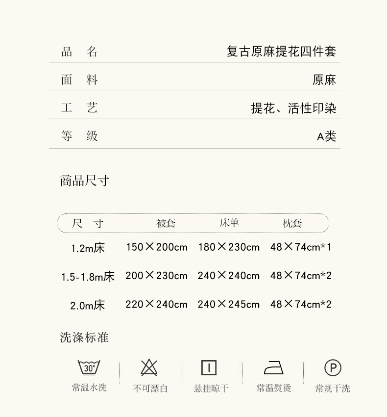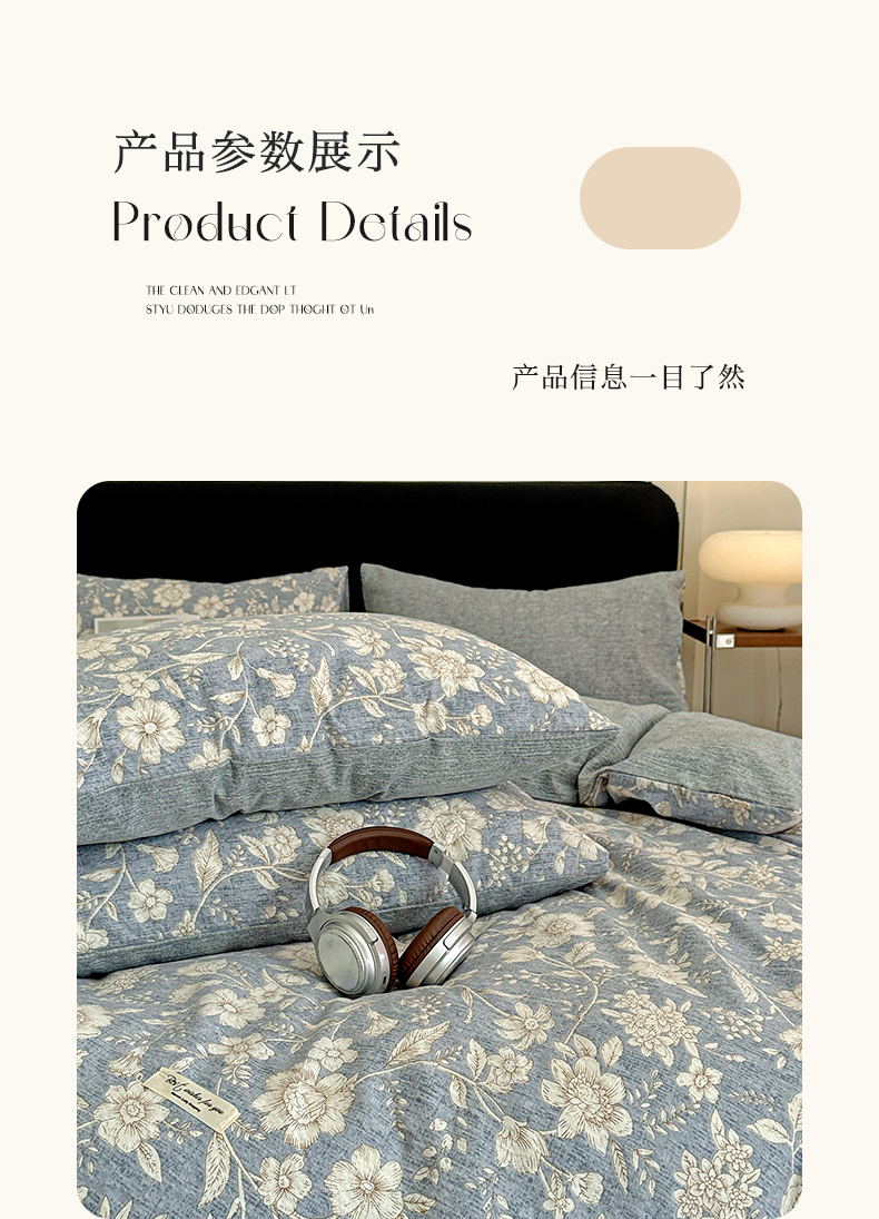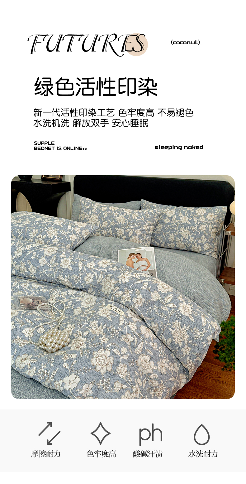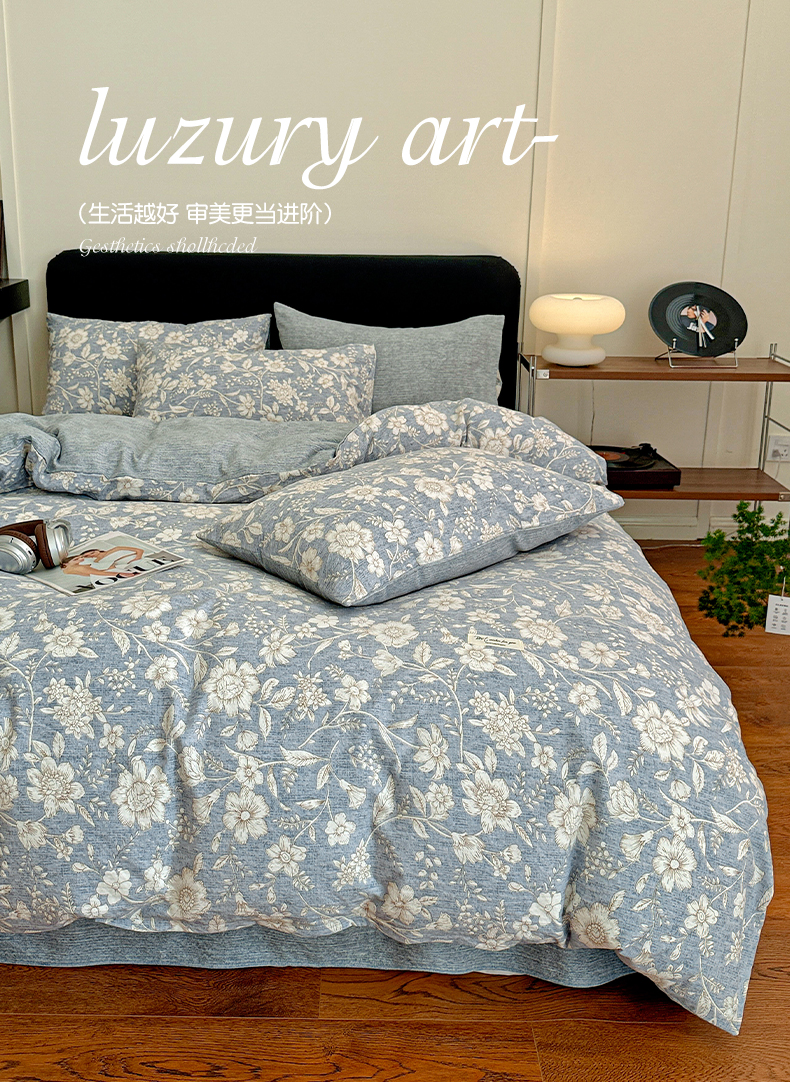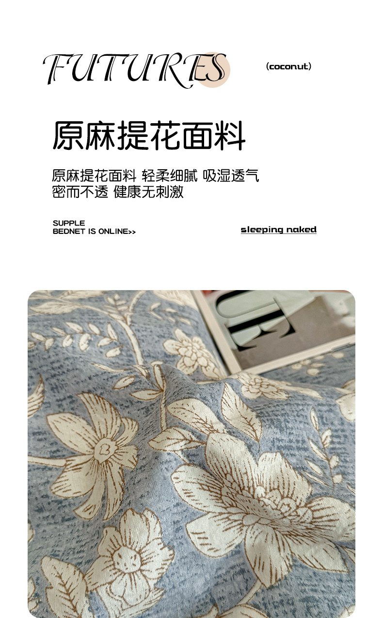 商品名称:金梦拉家纺 2025秋冬爆款新品高克重加厚原麻亚麻皱皱纱印花四件套 兰兮