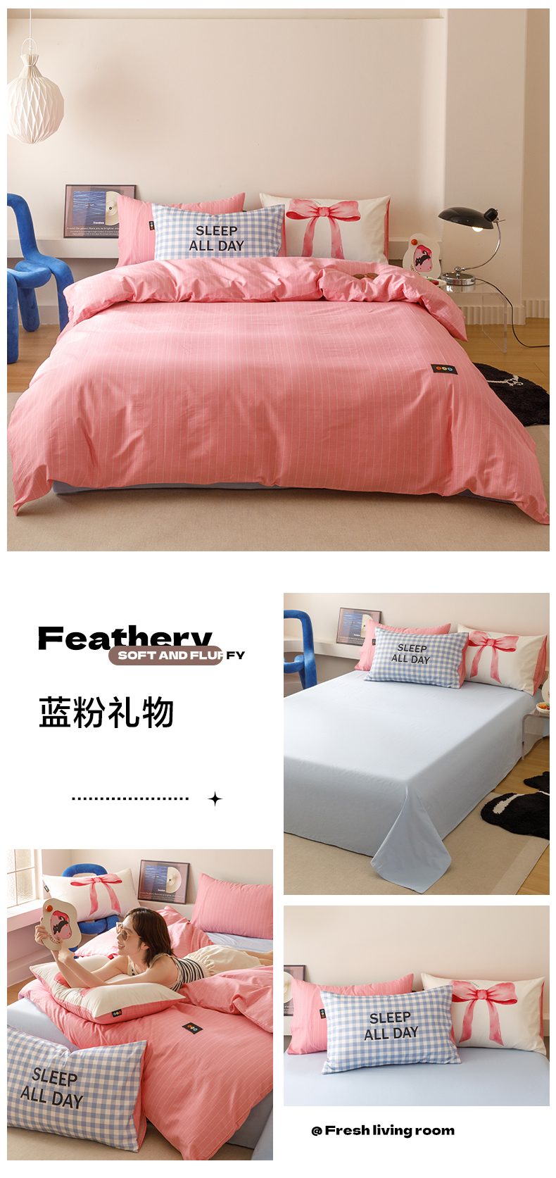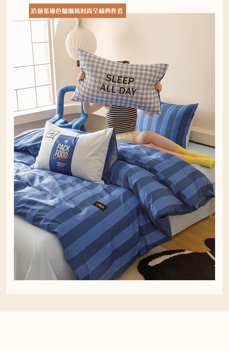当前位置: 91家纺网 > 商品网购 > 床品套件 > 四件套 > 全棉普通四件套 > RYB红黄兰 2025新款ins慵懒风撞色系全棉四件套学生季宿舍床纯棉三件套 深蓝假日