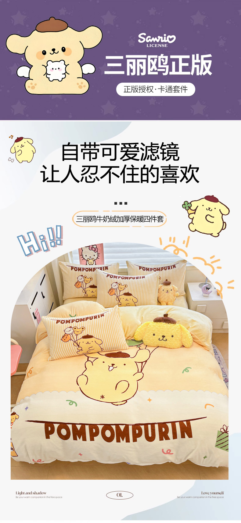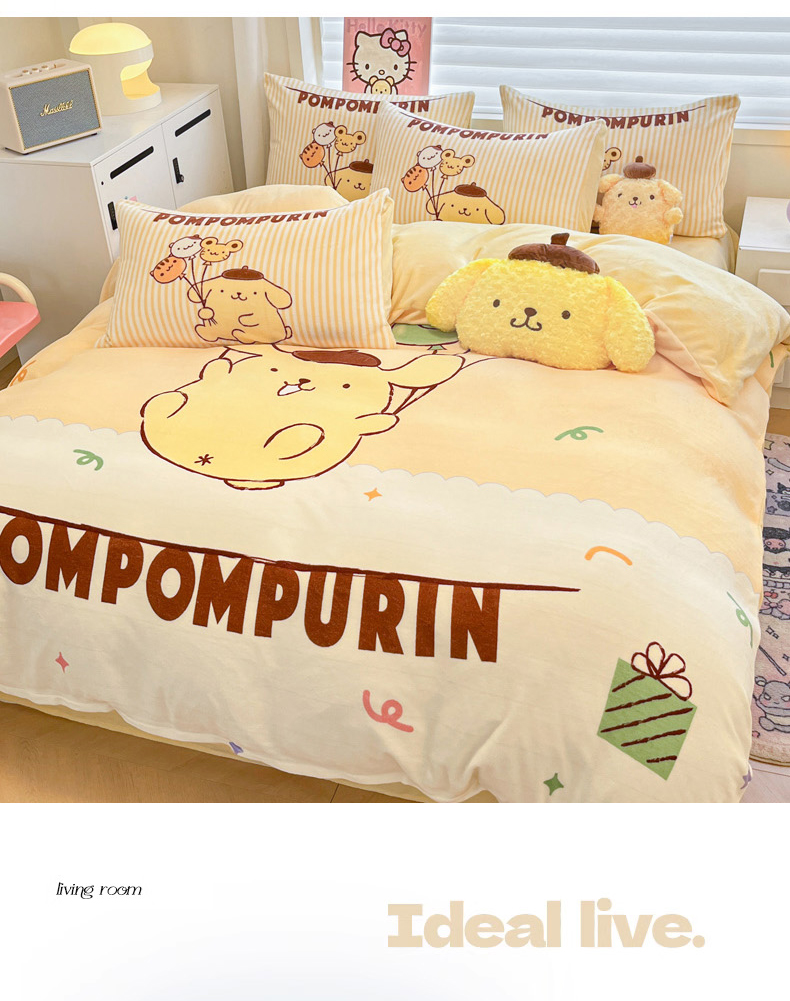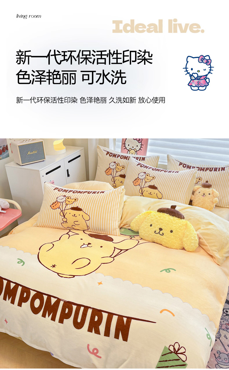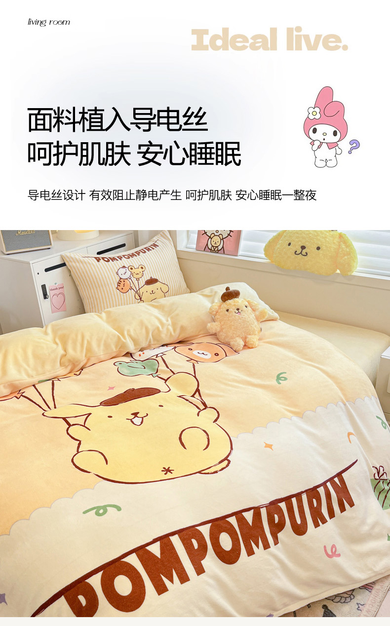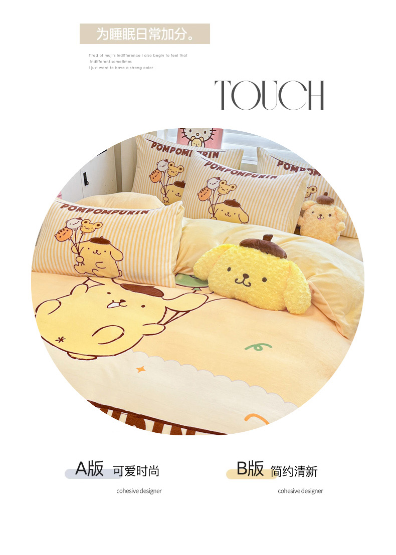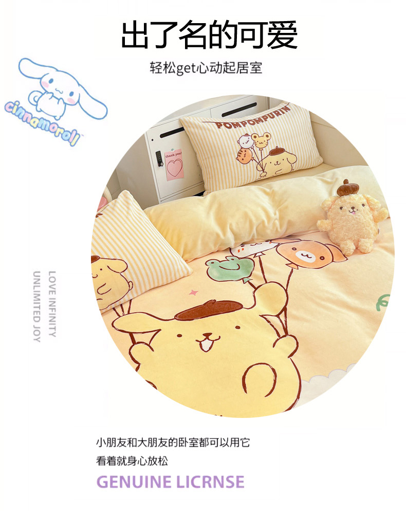 当前位置: 91家纺网 > 商品网购 > 床品套件 > 四件套 > 牛奶绒四件套 > 暮思家居 2025新款正版授权三丽鸥大阪数码印花高克重加厚保暖牛奶绒四件套 绒大阪-奶黄包布丁狗