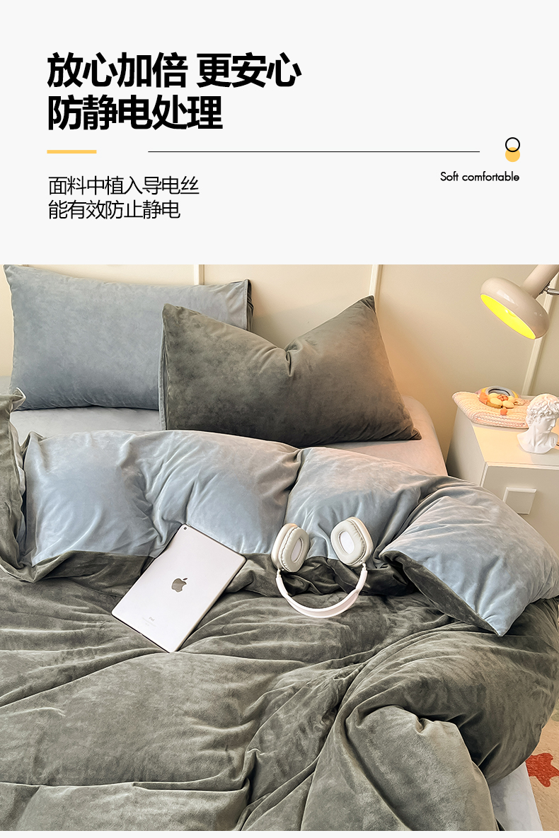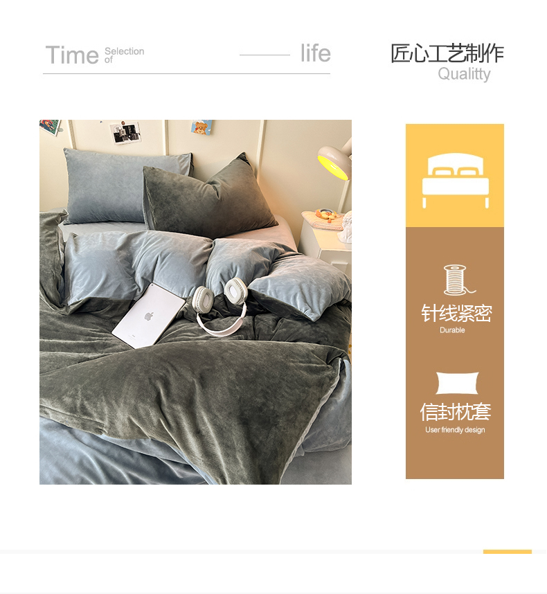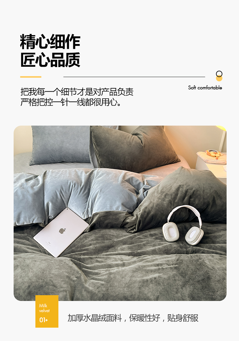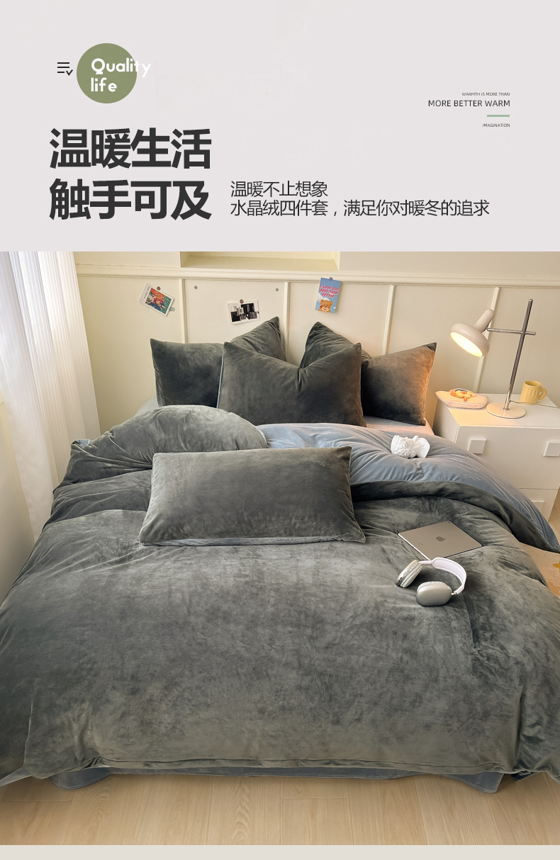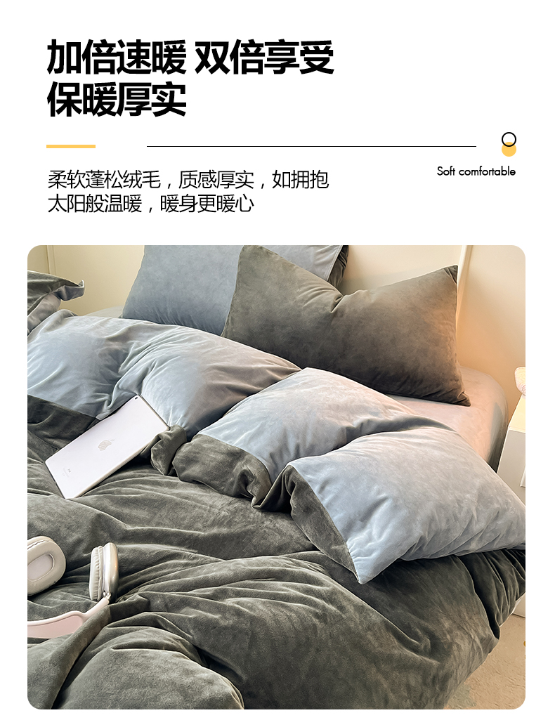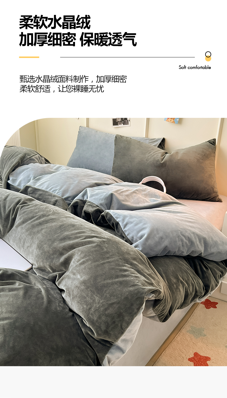 当前位置: 91家纺网 > 商品网购 > 床品套件 > 四件套 > 水晶绒四件套 > 悦织湾家纺 2025新款亲肤水晶绒四件套纯色轻奢加厚保暖床单床笠款四件套学生宿舍三件套单被套 水晶绒深灰+浅灰