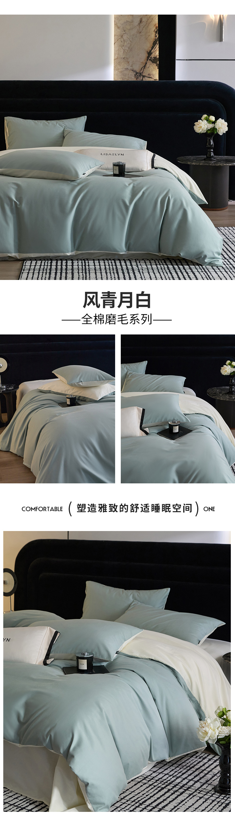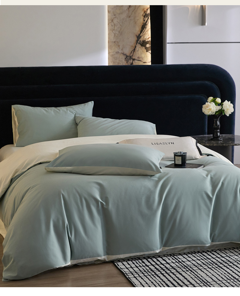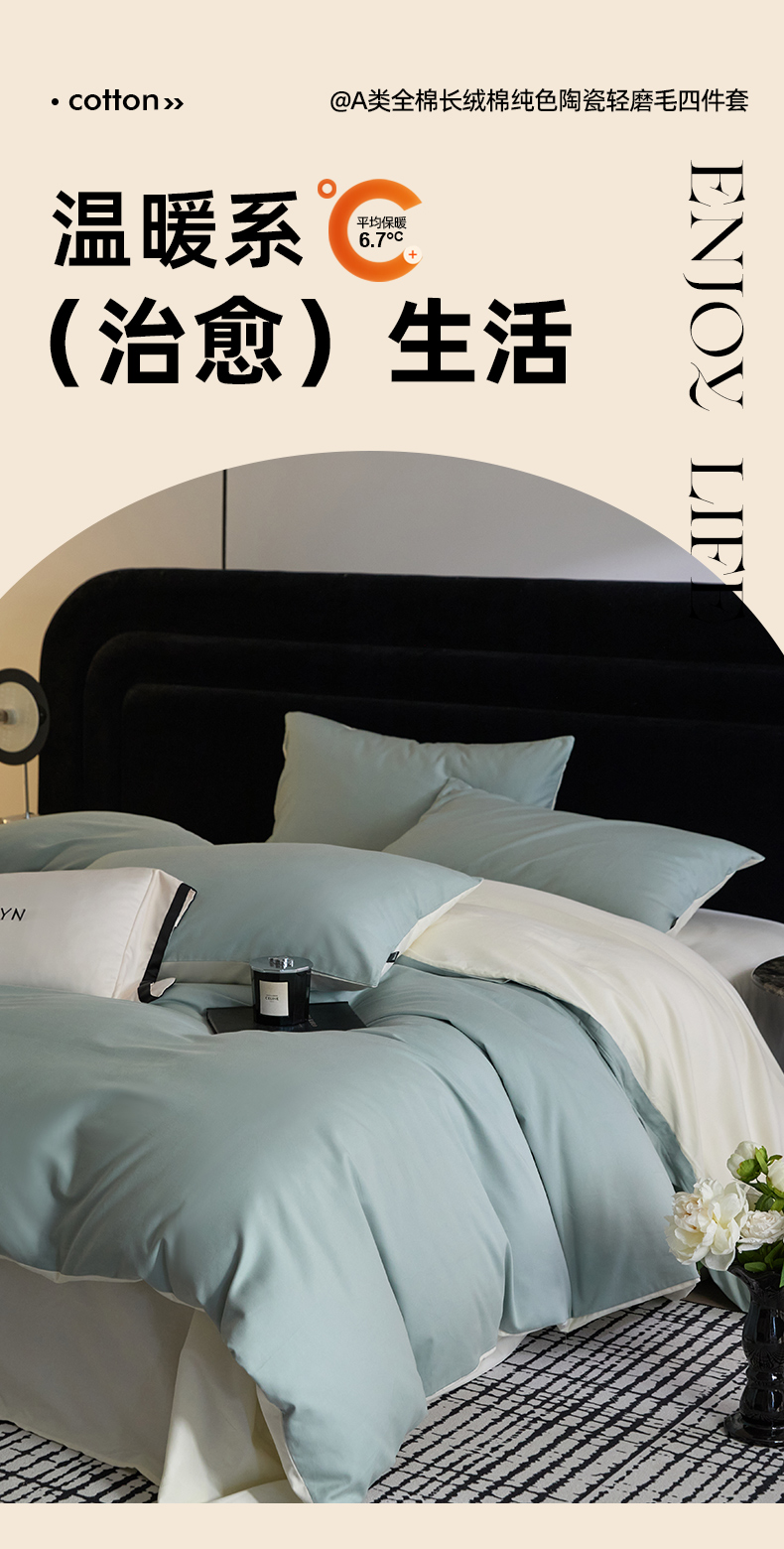 商品名称:朵希曼 2026新款全棉纯色长绒棉磨毛系列四件套 风青月白