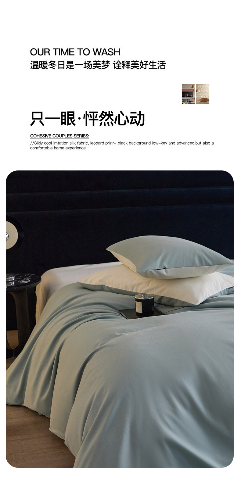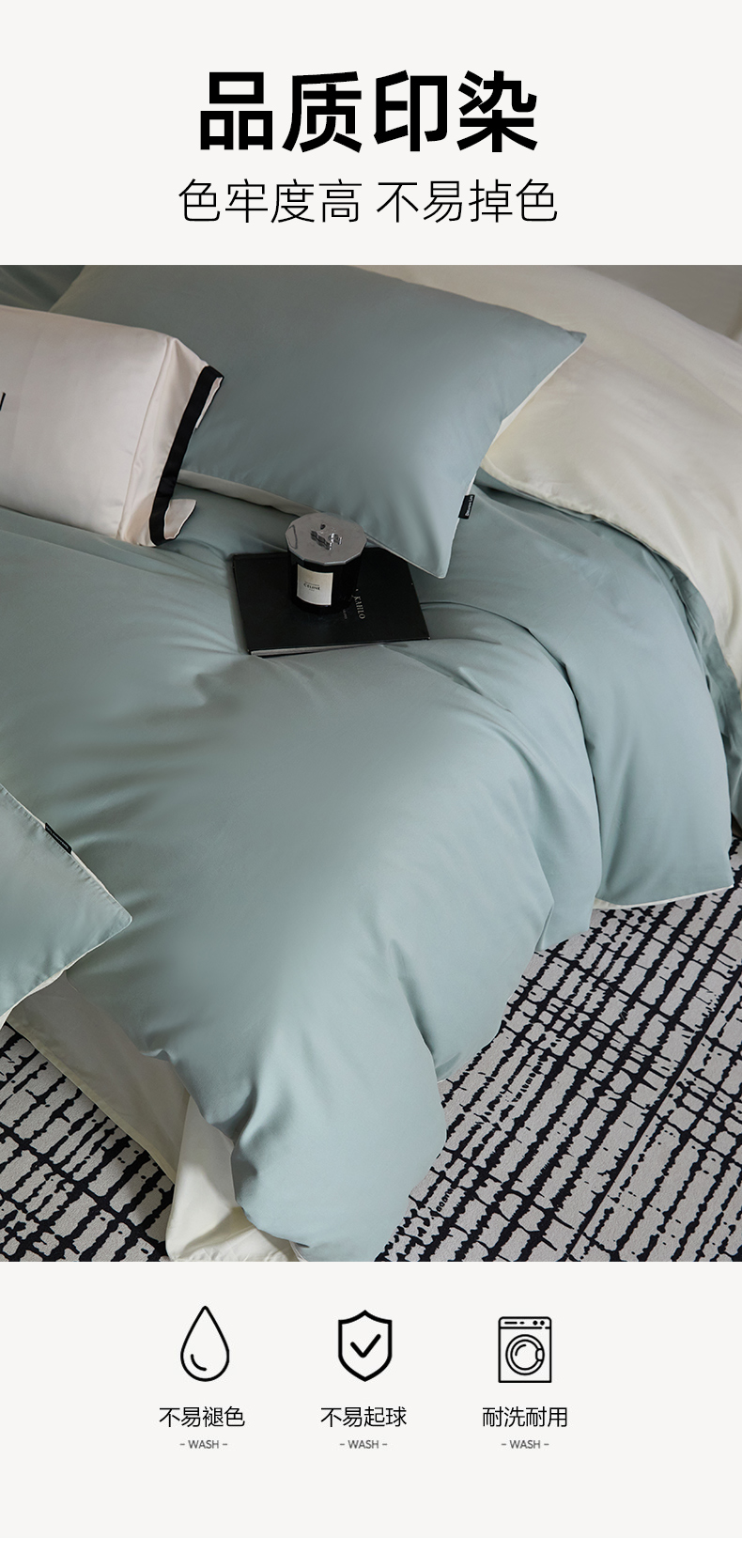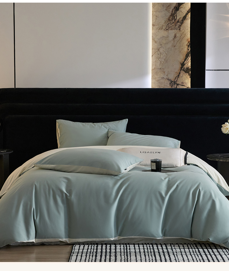 商品名称:朵希曼 2026新款全棉纯色长绒棉磨毛系列四件套 风青月白