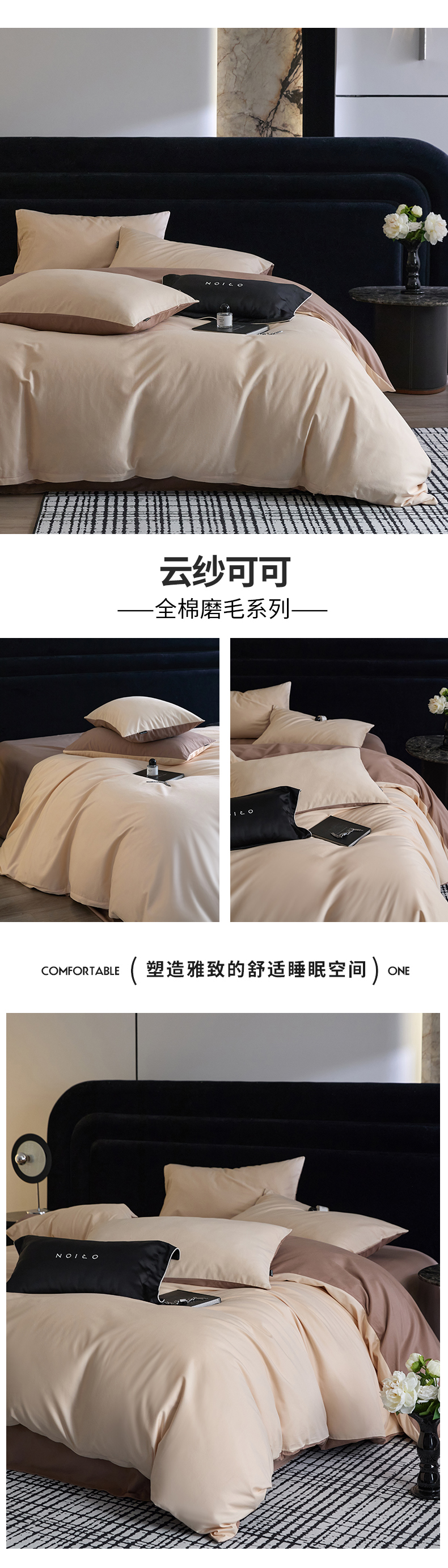 (总)朵希曼 2026新款全棉北欧黑白极简系列四件套,复古摩登,黑糖牛奶,棋盘格小熊