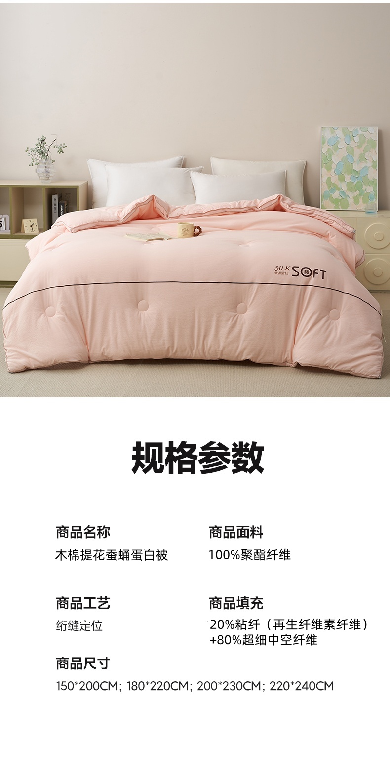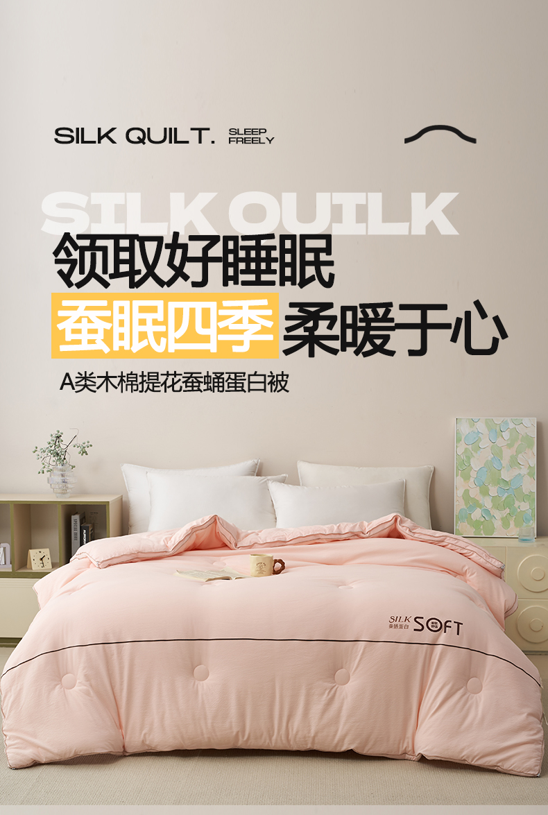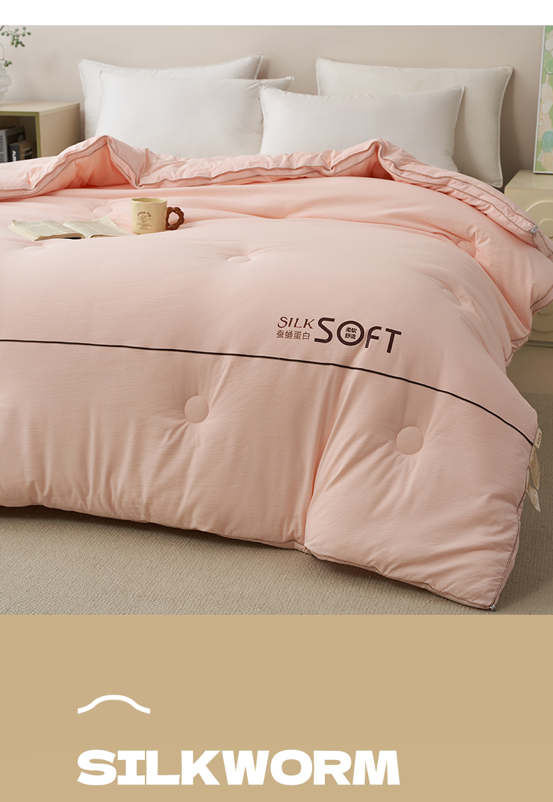 商品名称:蓝雀翎 2025新款木棉提花蚕蛹蛋白被子被芯 粉色