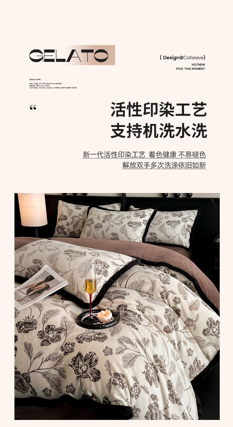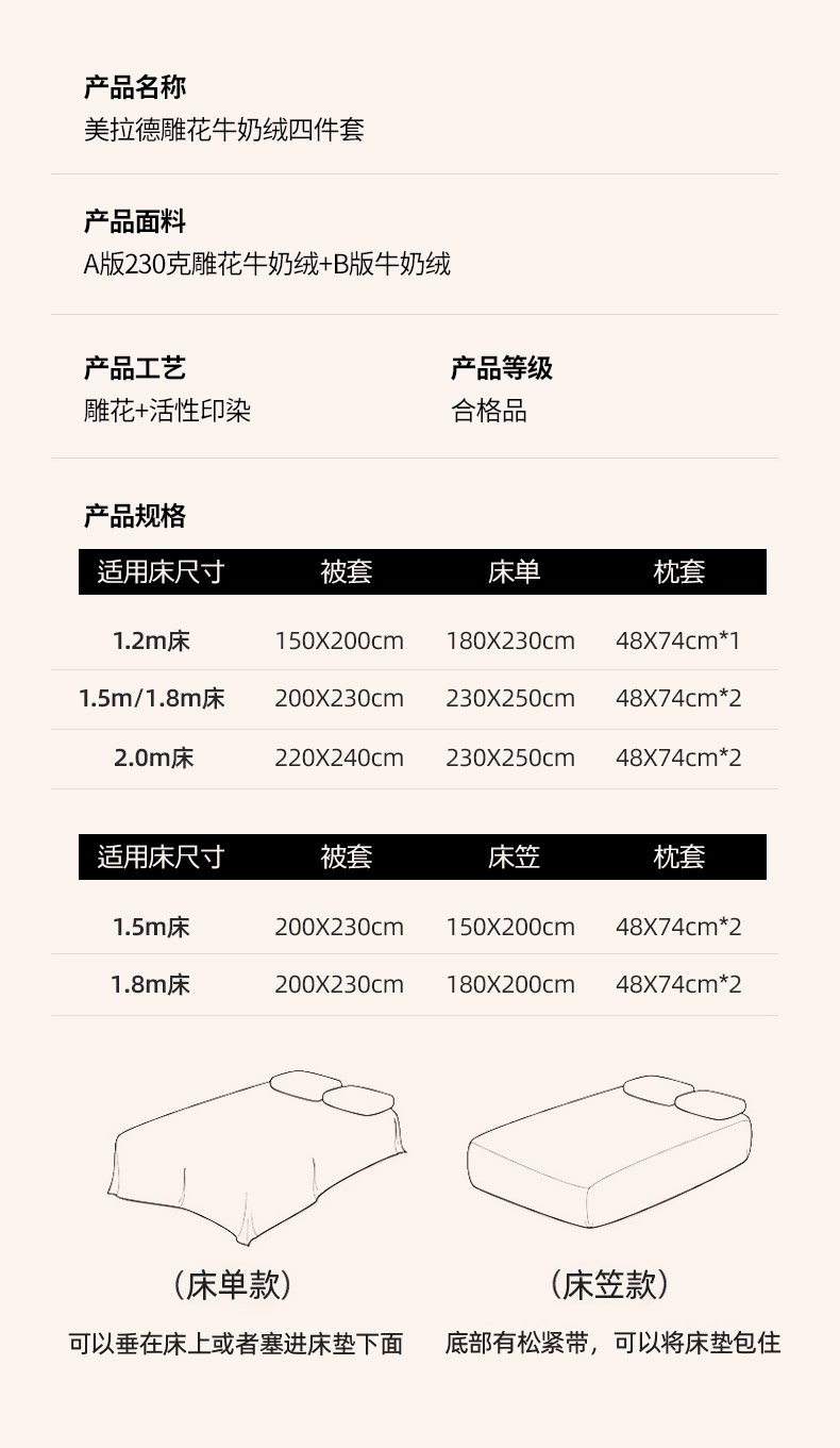 商品名称:(总)吾秀家居 绒城 230克美拉德雕花绒四件套兔毛边牛奶绒四件套 - 黑金系列