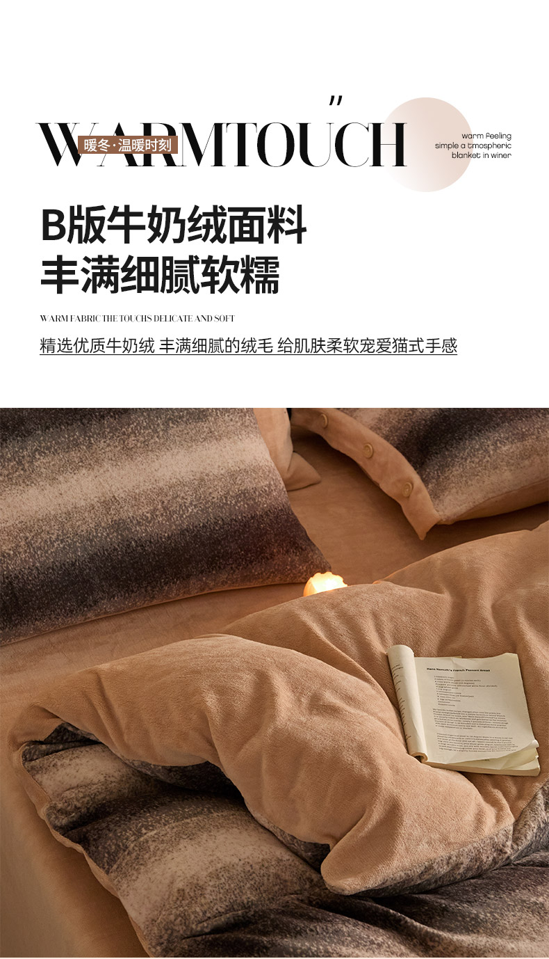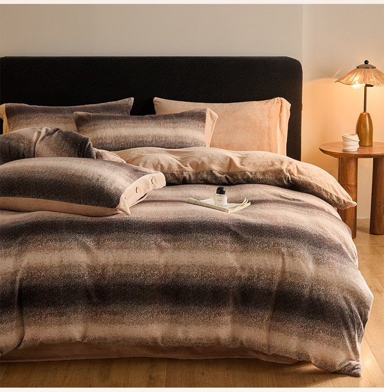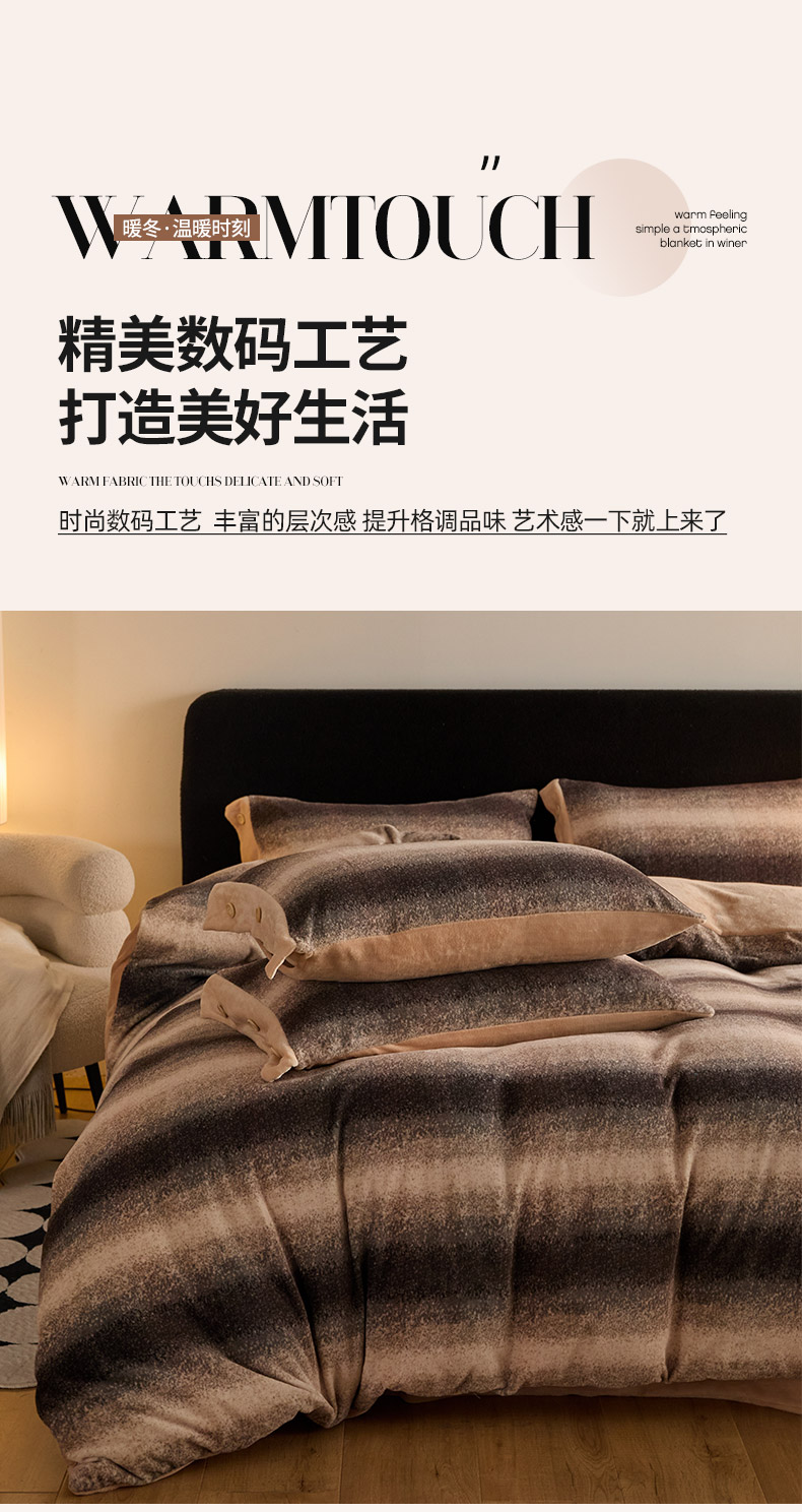 吾秀家居 绒城 2025 纽扣工艺款230克美丽绒四件套 牛奶绒四件套-美丽系列 宽条咖