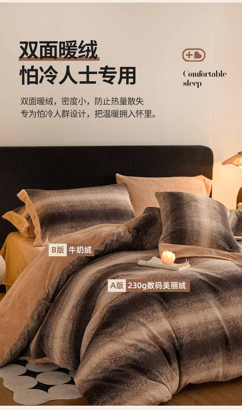 (总)吾秀家居 绒城 230克美拉德数码绒四件套 牛奶绒四件套 - 暖秋系列,花韵,暗香,冬日恋歌-咖,冬日恋歌-棕,冬日森林,花意浓,境玉森林,罗曼庄园,拿铁玫瑰,深紫罗兰,丝绒玫瑰,幽香花语