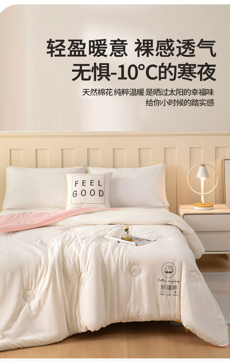 • 91家纺网 家纺一手货源 找家纺 奕宸居 2025新款新疆棉花保暖被被子被芯-本白 本白-蓝